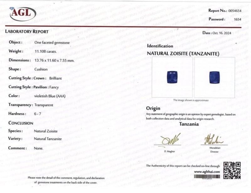 Cushion Faceted Cut, Deep Violetish-Blue, Loose, Unset. Stone Comes Sealed With Agl Report: 0054654.