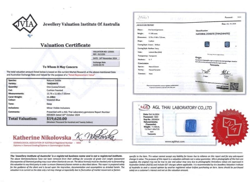 This Insurance Valuation has been provided by a registered Jewellery Valuer and is intended for insurance purposes only. The valuation amount has no bearing on the auction value of the item. Any questions regarding the valuation should be directed to the issuing Valuer (refer to contact details on the certificate) as Lloyds have no association or relationship with the Valuer or the valuation amount contained within the valuation.