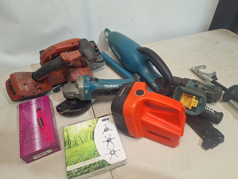 Assorted Tools Lot Includes Makita Cordless Driver Drill, Cordless Grinder, Cordless Saw & More SOLD AS LOT