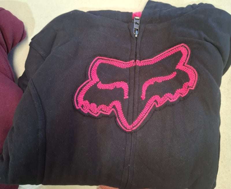 Assorted box of Fox apparal, includng womens tops,and hoddies. Various sizes and styles.