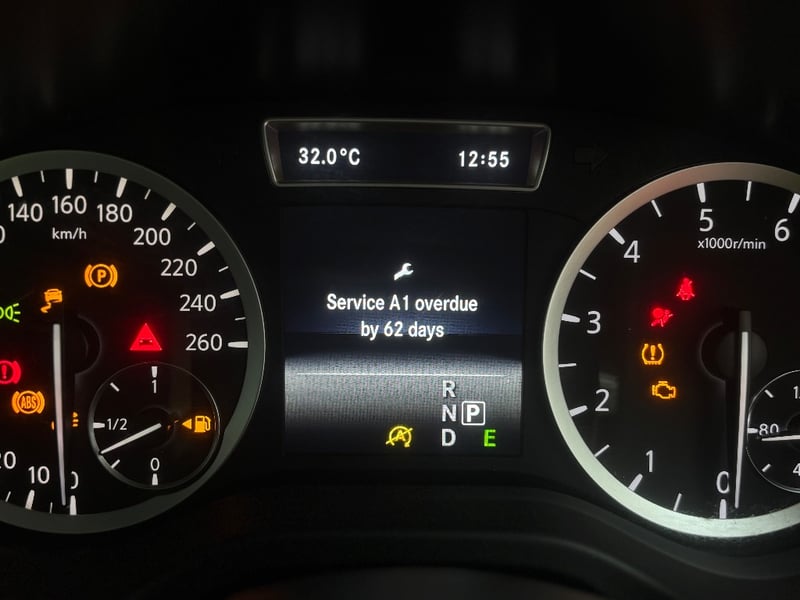 - Dash displays, “Service Overdue by 62 days”