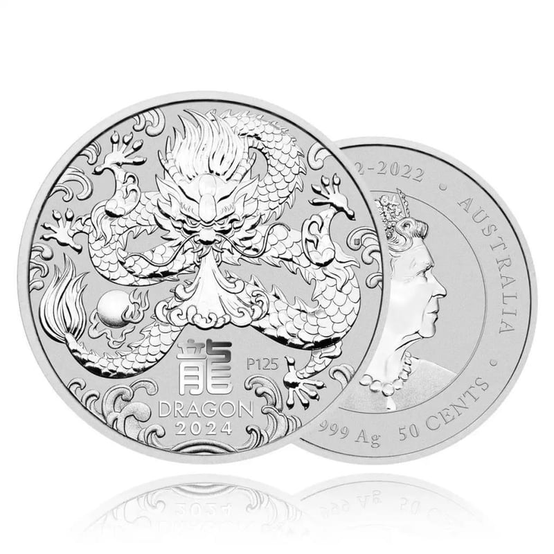 1/2OZ SILVER COIN 2024 YEAR OF THE DRAGON - PERTH MINT-SOLD OUT ISSUE Condition: Good - Refer Images 0311153+123