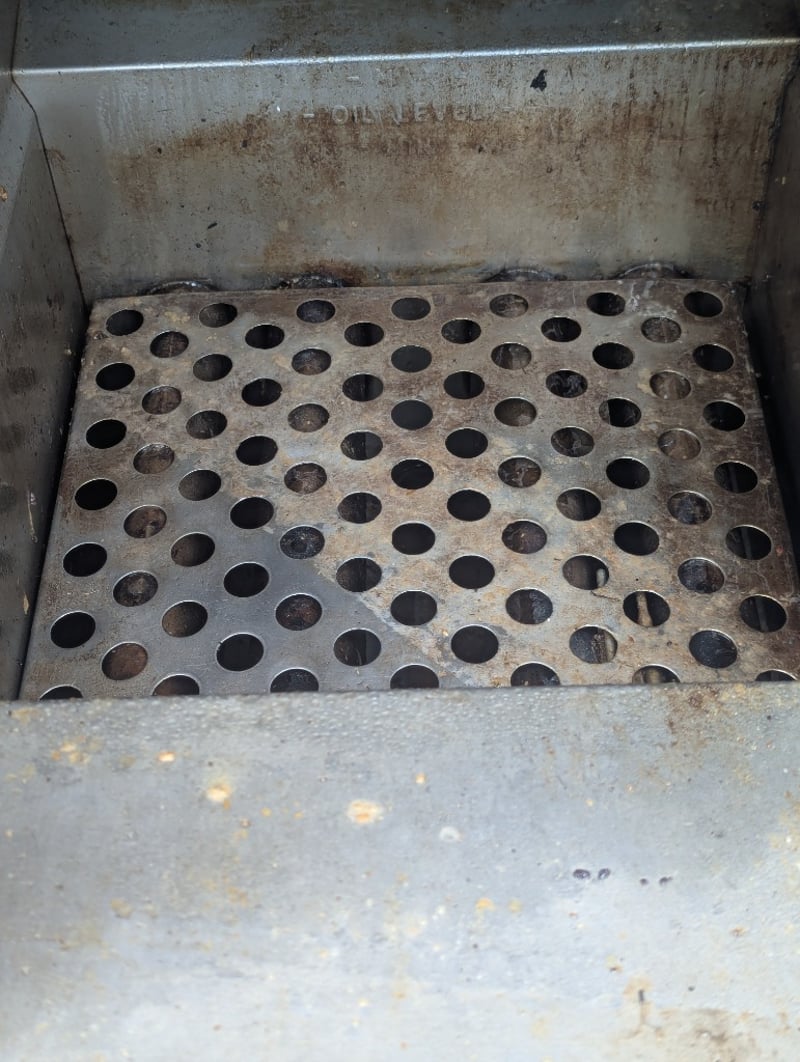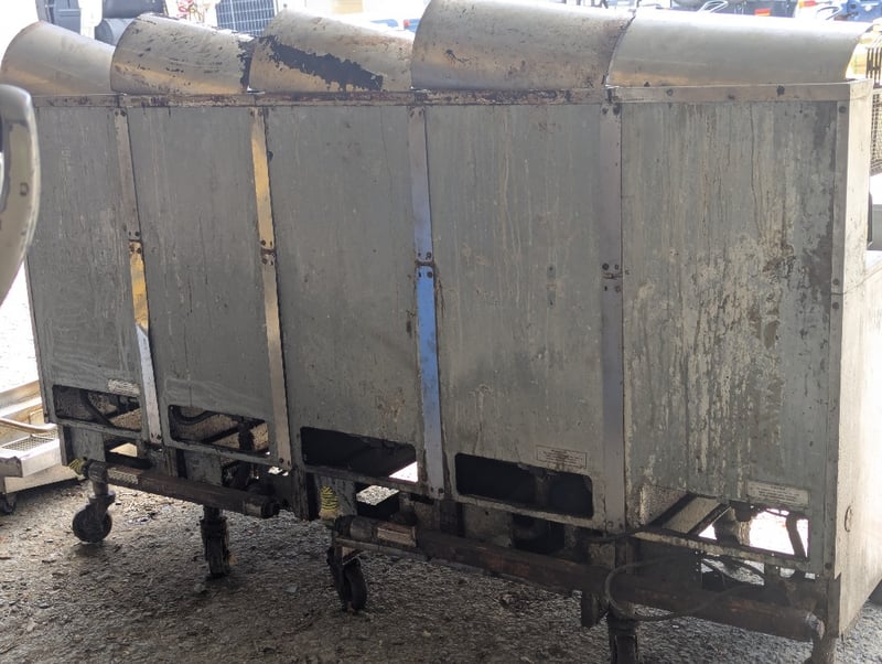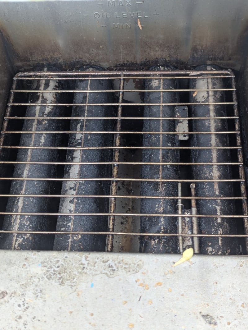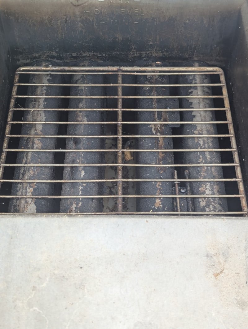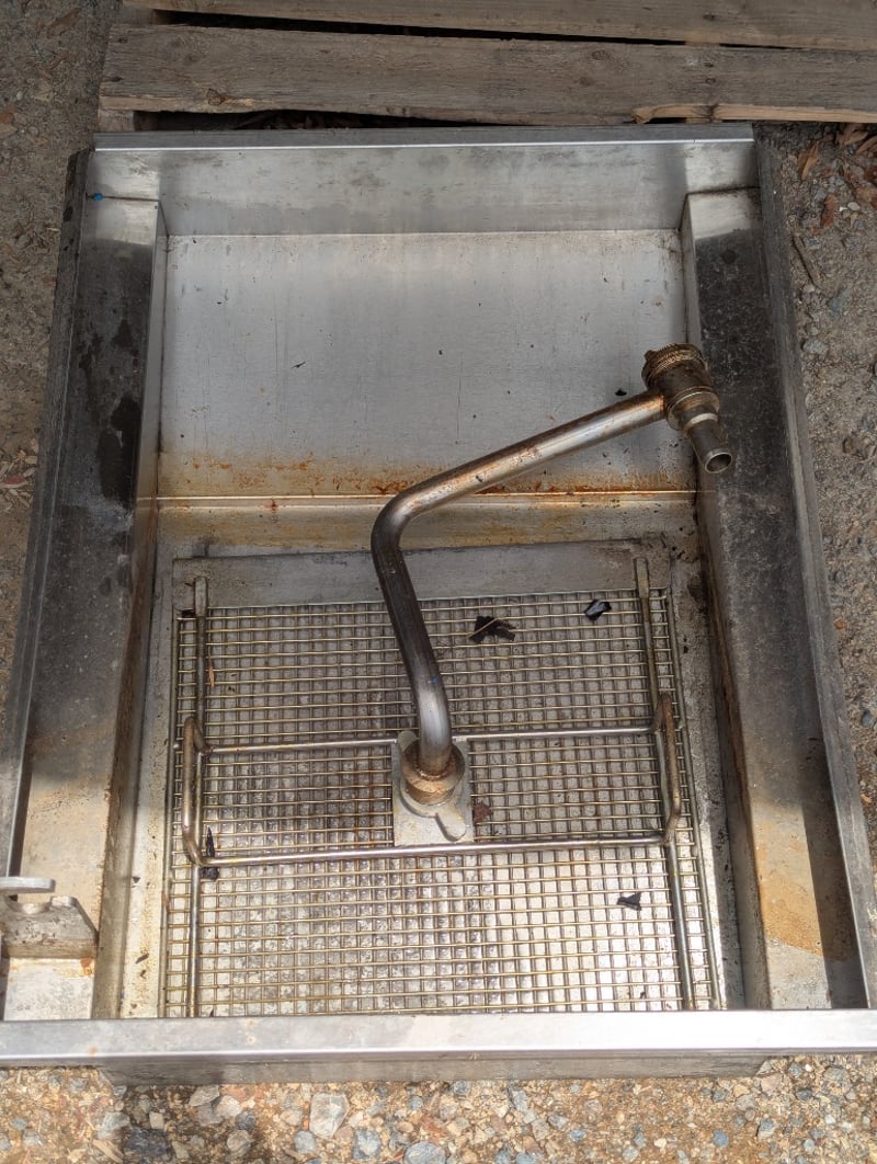 Commercial deep fryer bank, Pitco, 5 x separate fry potsAdditional filter pan and drain pipeDimensions: H 135cm x W 200cm x D 90cm