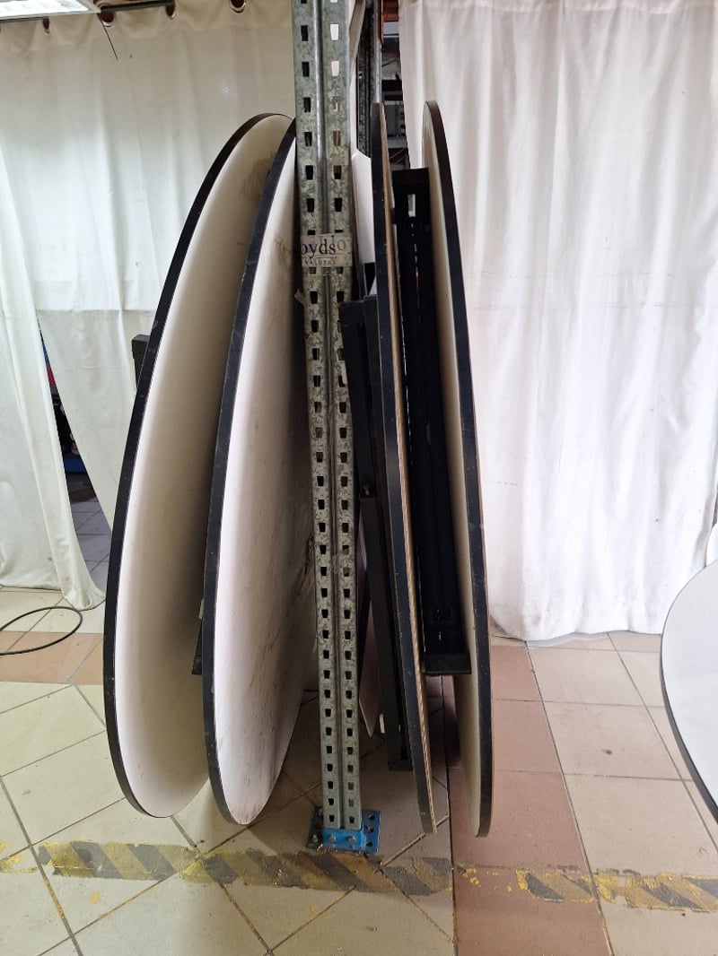 Event Table x 5, Timber Style, White FinishDimensions H:72cm W:166cm D:166cmSOLD AS LOT