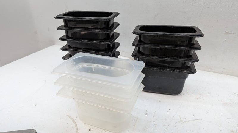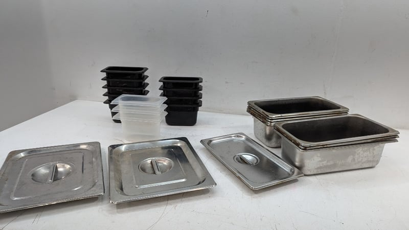 Assorted Food Containers, Stainless Trays for Bain Marie, Plastic Food Containers, Quantity Per Lot Sold As Lot