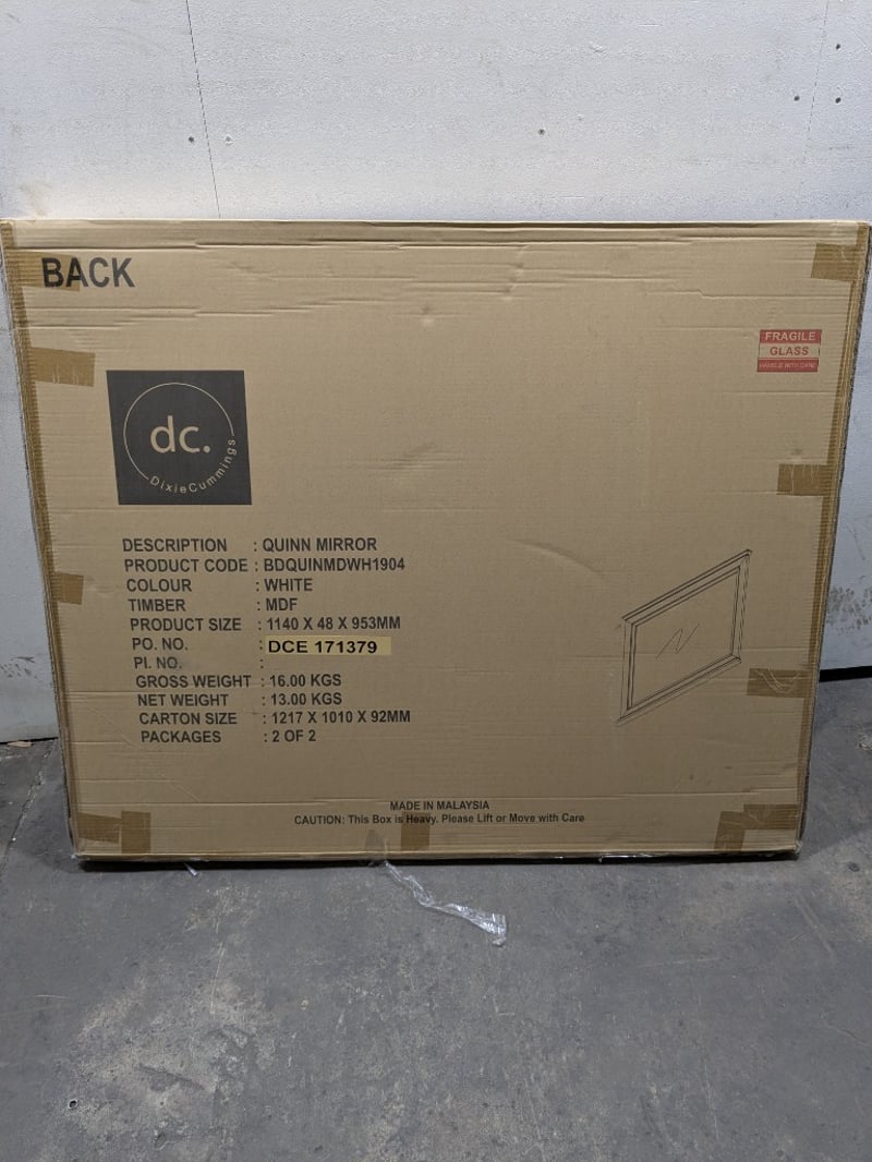 Dixie Cummings DC, BDQUINMDWH1904 Quinn Mirror Colour: White Dims: 114cm x 4.8cm x 95.3cm