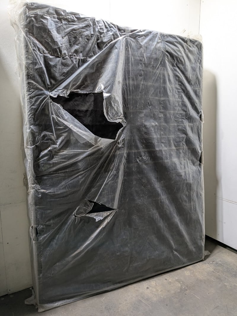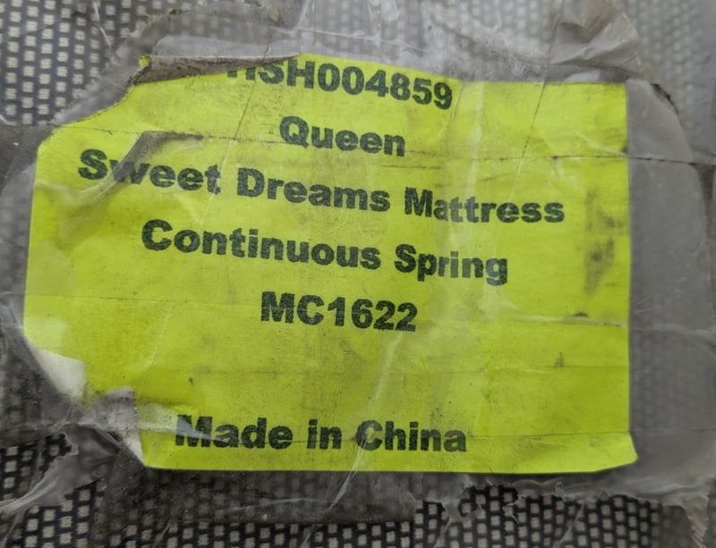 Queen-sized mattressDims:152cm L, 203cm H, 19cm WNote: signs of wear and tear.