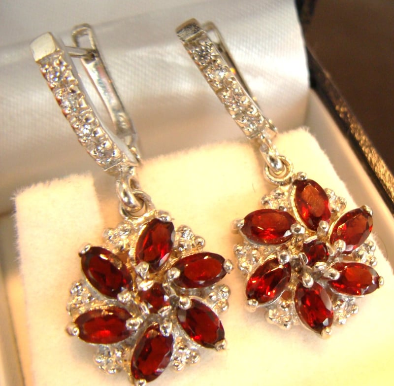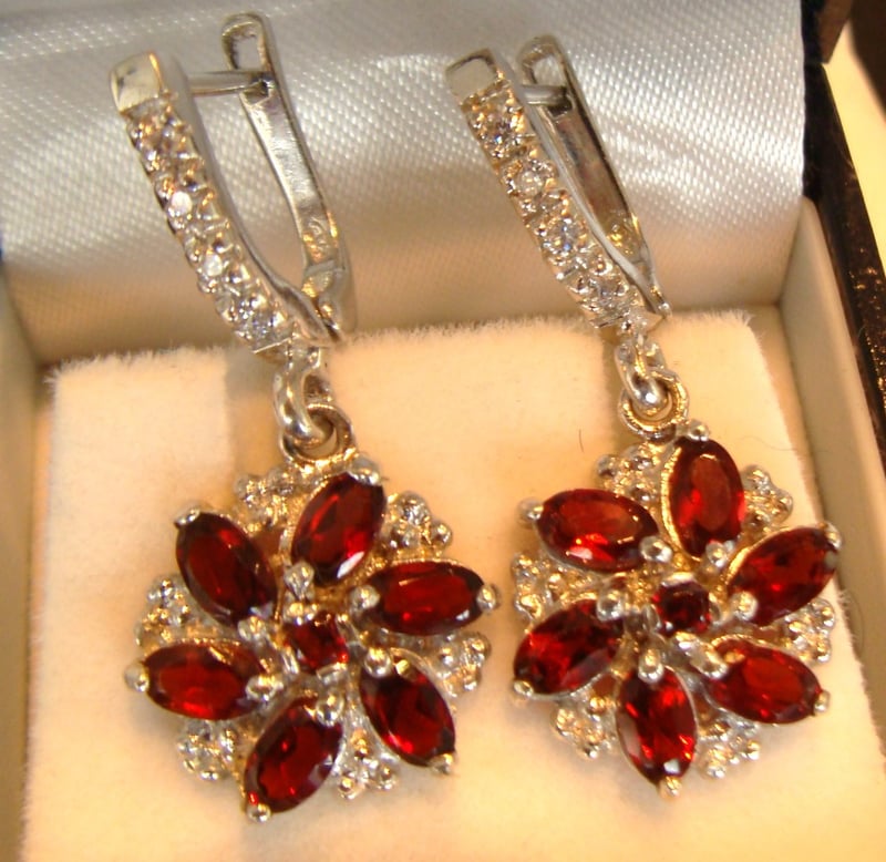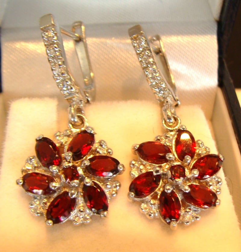 STERLING SILVER 925 EARRINGS WITH RED GEMSTONES