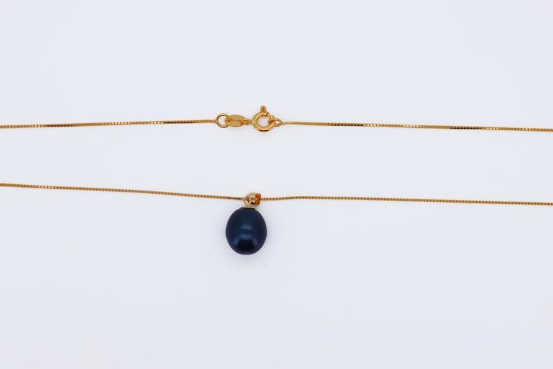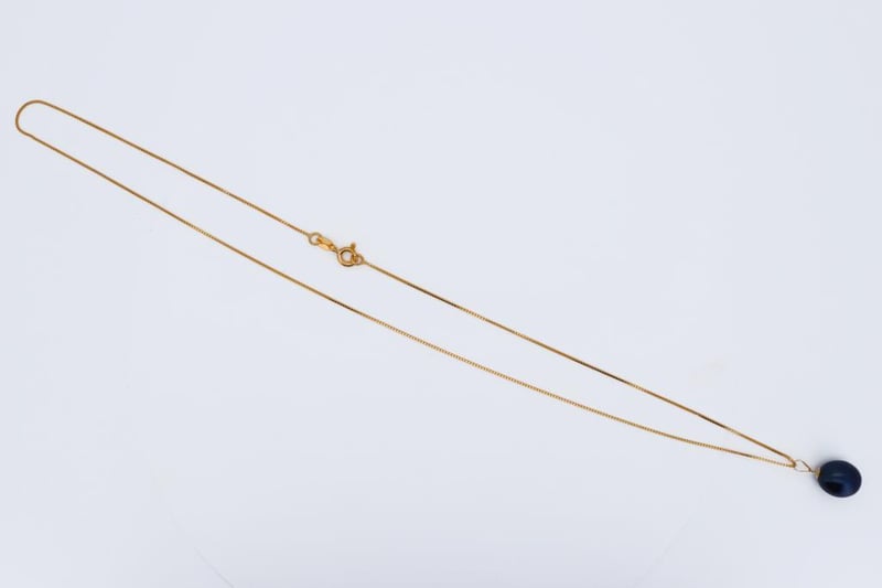 Comments: The Examined Item Is A Cultured Freshwater Pearl Set In An 18K Gold Pendant. The Pearl Displays A Violetish-Blue Color With An Oval Cabochon Form. Color-Enhancement Treatments May Be Present, As Vivid Hues In Pearls Often Undergo Such Processes.