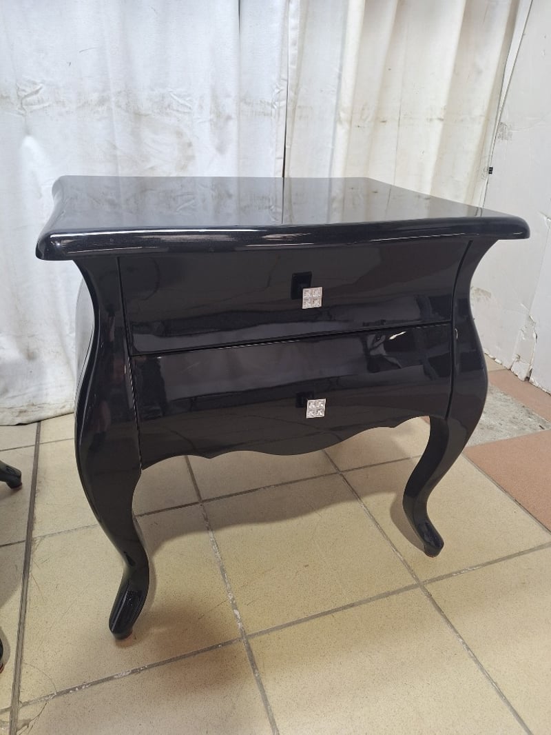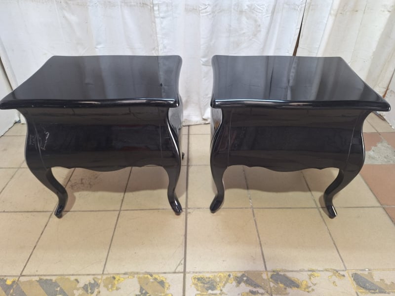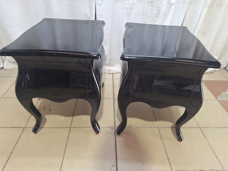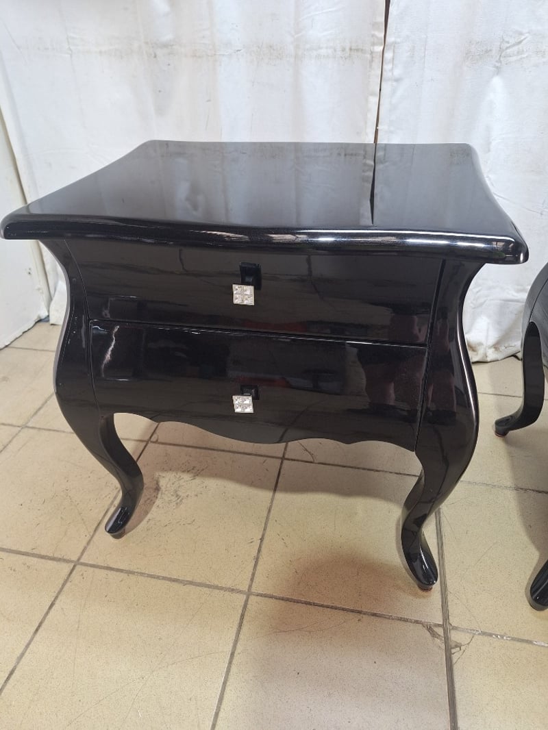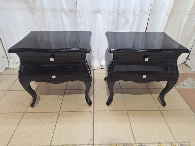 Pair Of Bed Side Tables, 2 Drawers, Timber Style, Black Finish