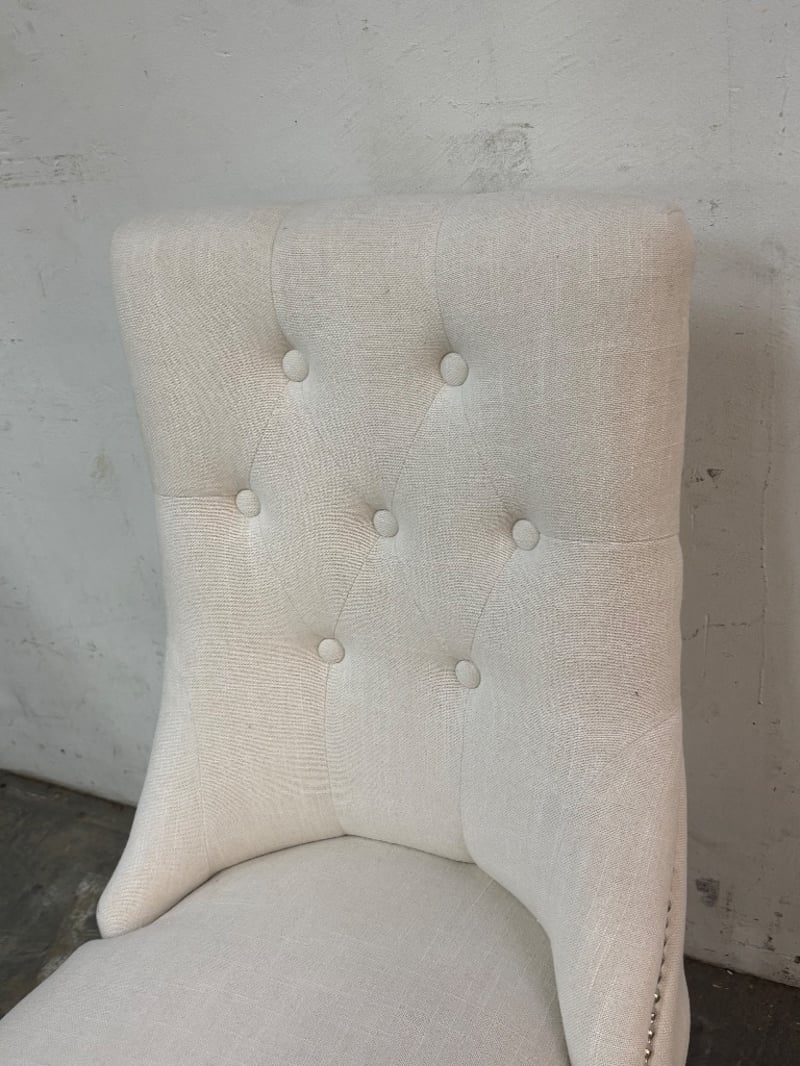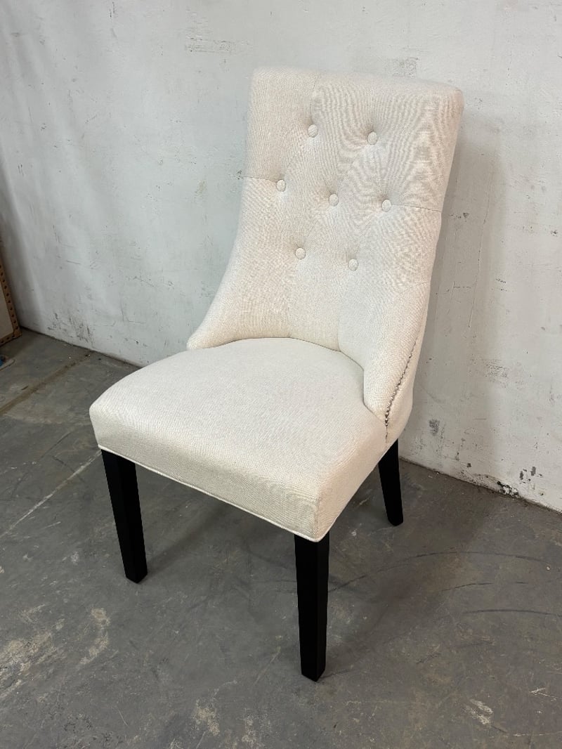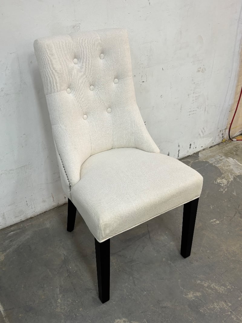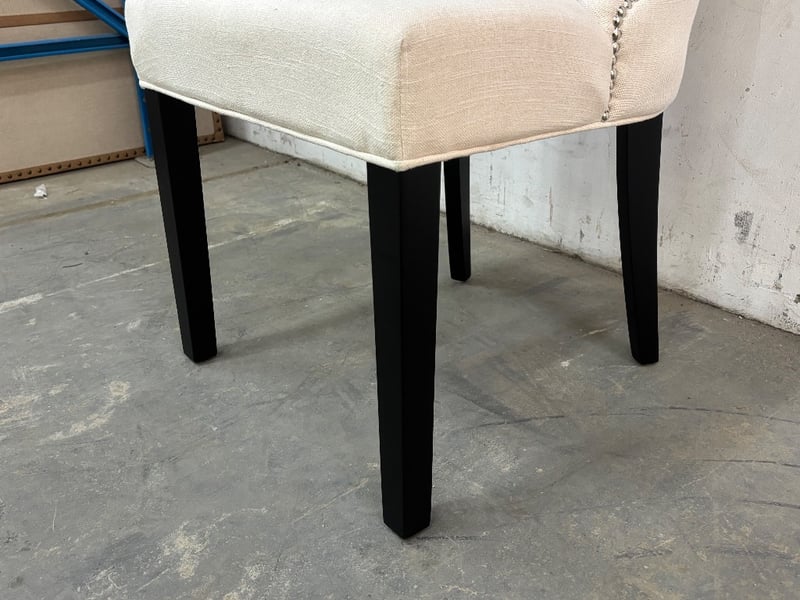 Dining Chairs, Contemporary Manhattan Style, Natural Linen Cover Style, Painted Wood Black Tapered Legs