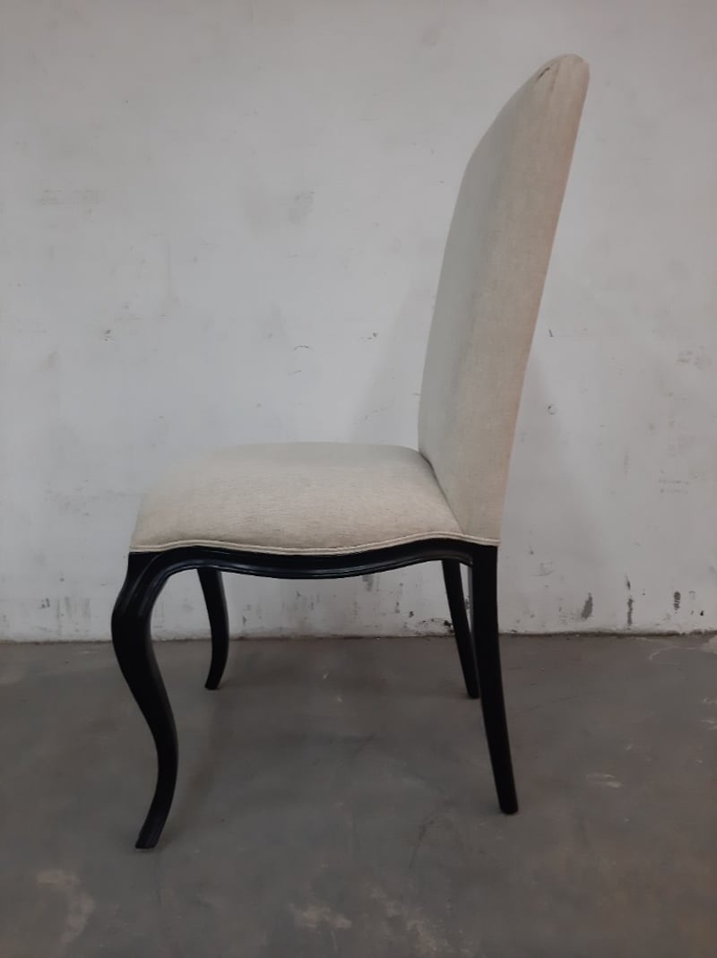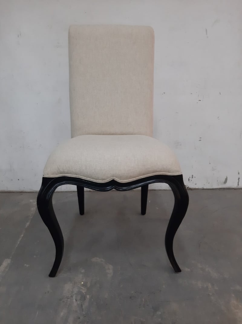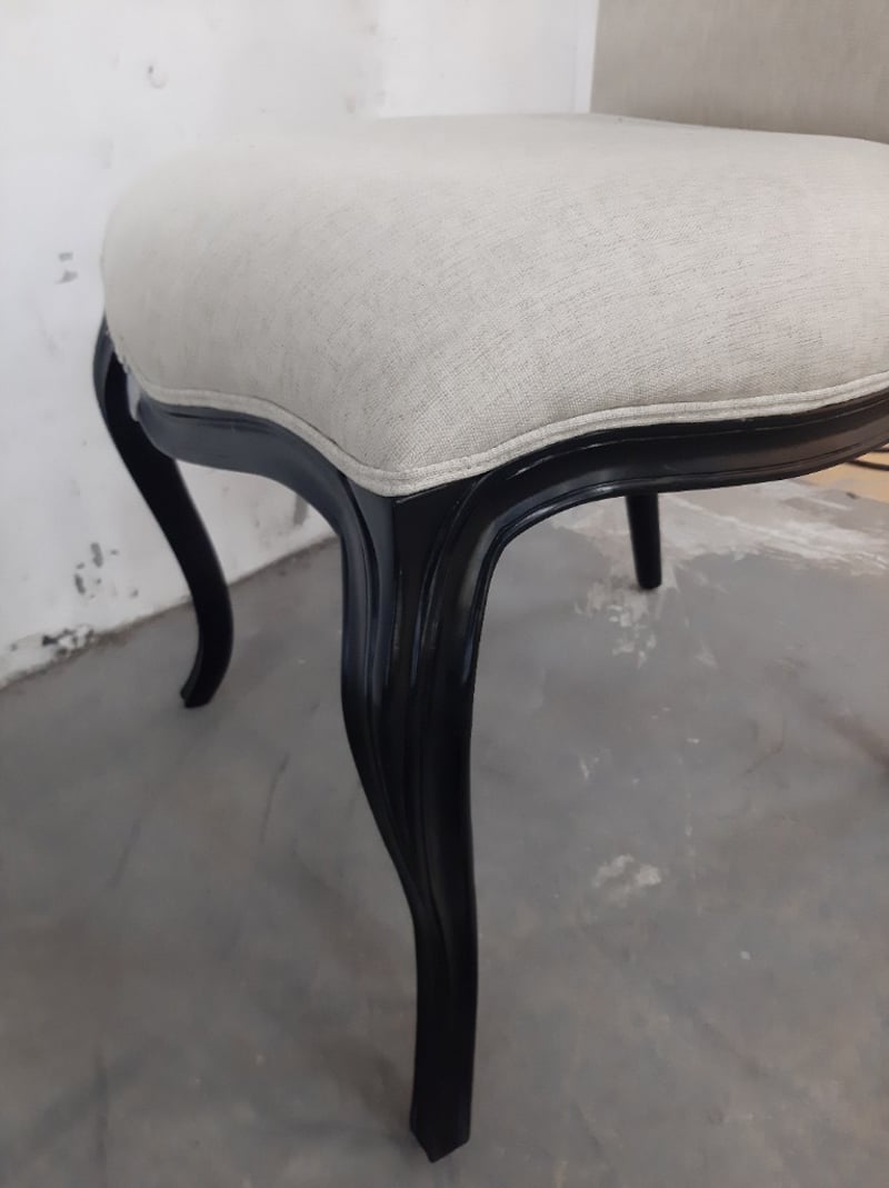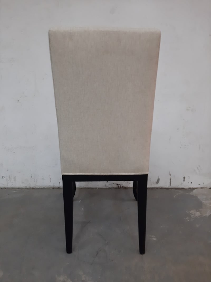 Dining chair, black finish timber frame, light grey fabric seating and backDimensions: 52cm x 104cm x 50cm