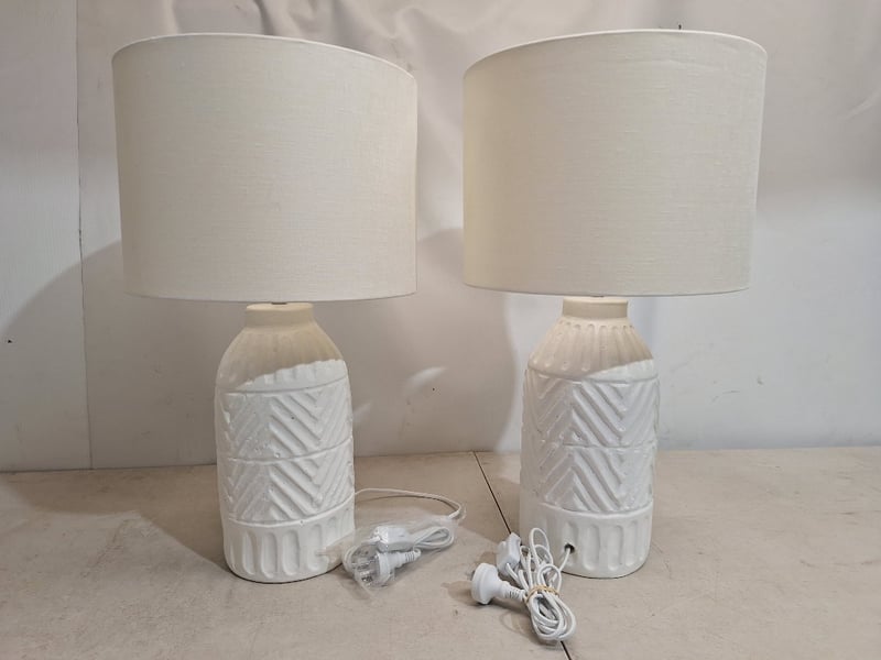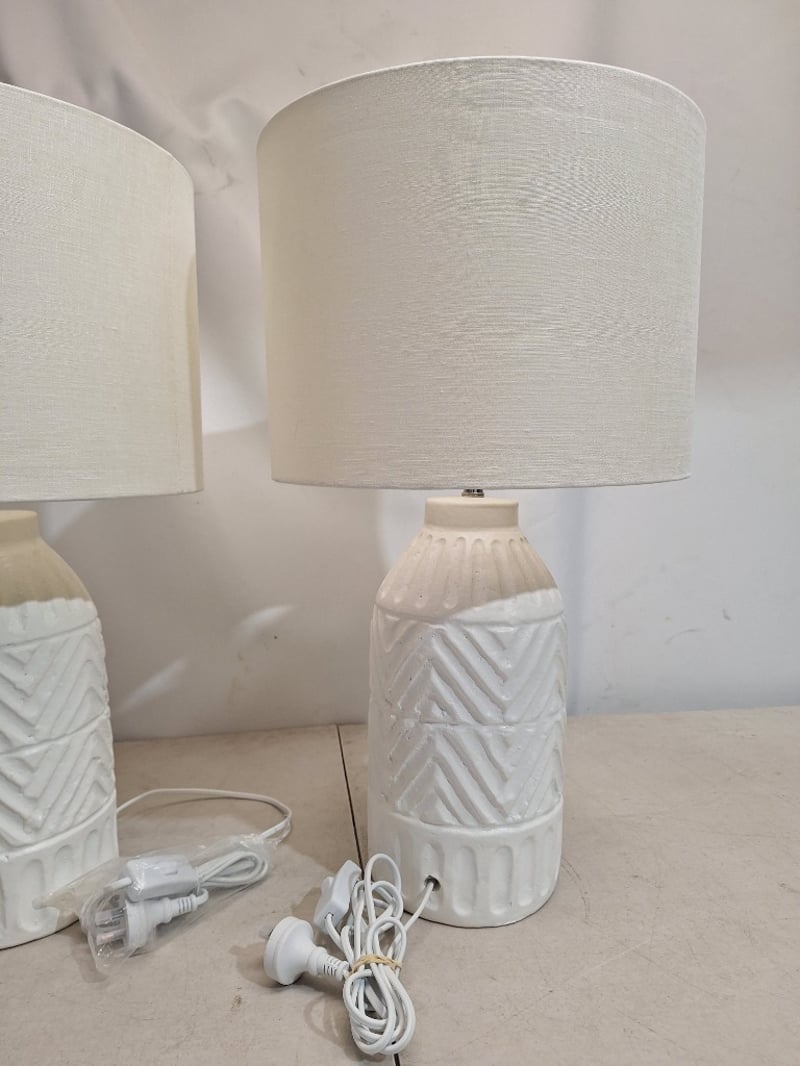 Set Of Table Lamps, Ceramic Style, White FinishDimensions H:56cm W:32cm D:32cm