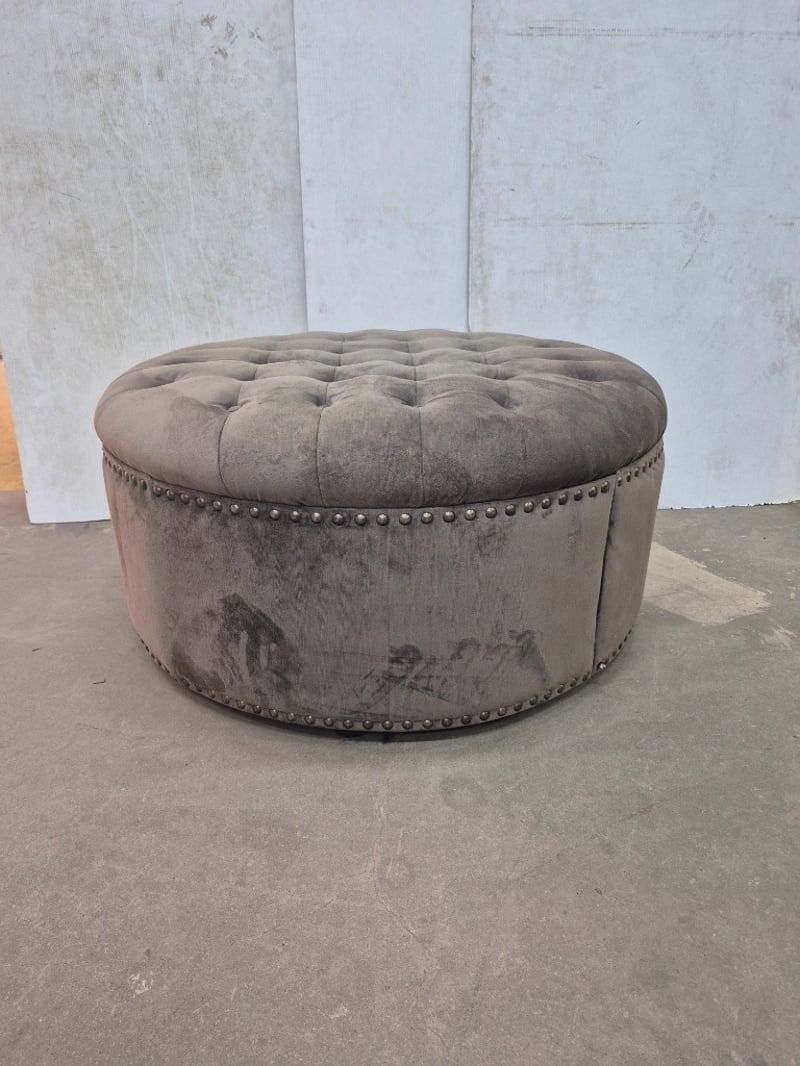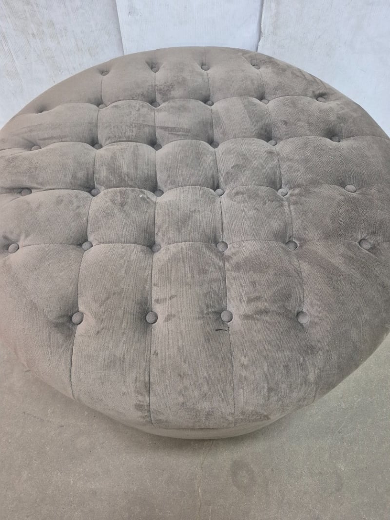 Ottoman, circular design, grey finishDimensions H 48cm x W 95cm x L 95 cm