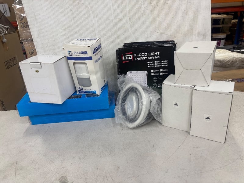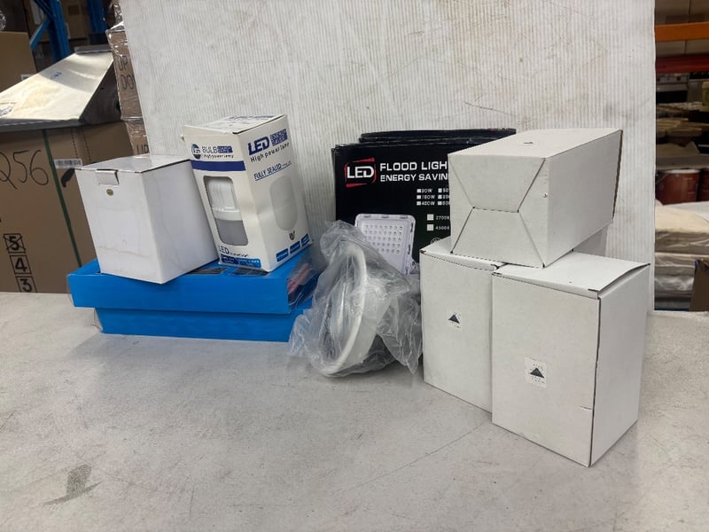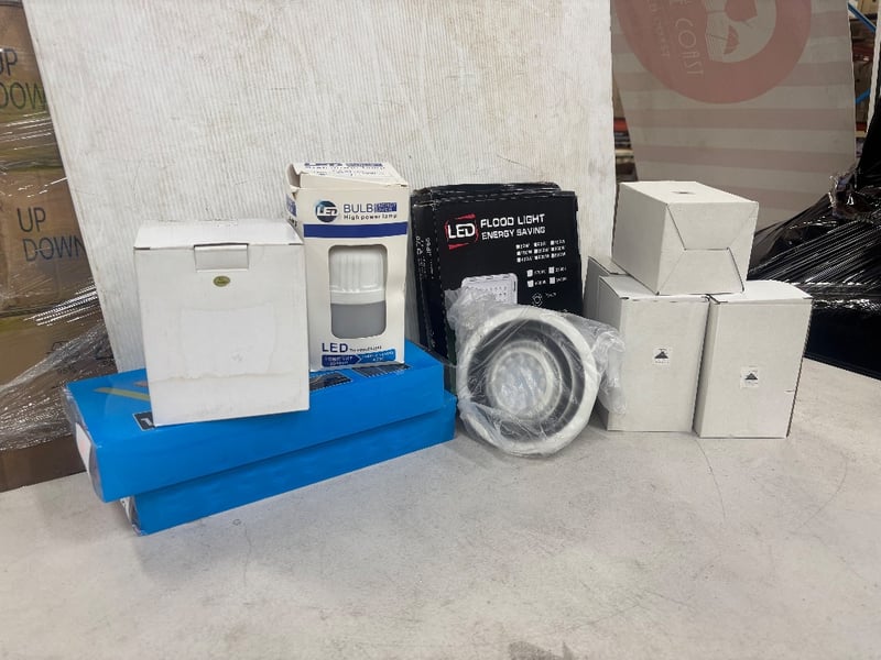 Assorted Lot of LED High Power Lamps, Flood Lights, COB Modules, Ceiling Lights, Outdoor Lights and MoreCondition: UntestedSold as lot