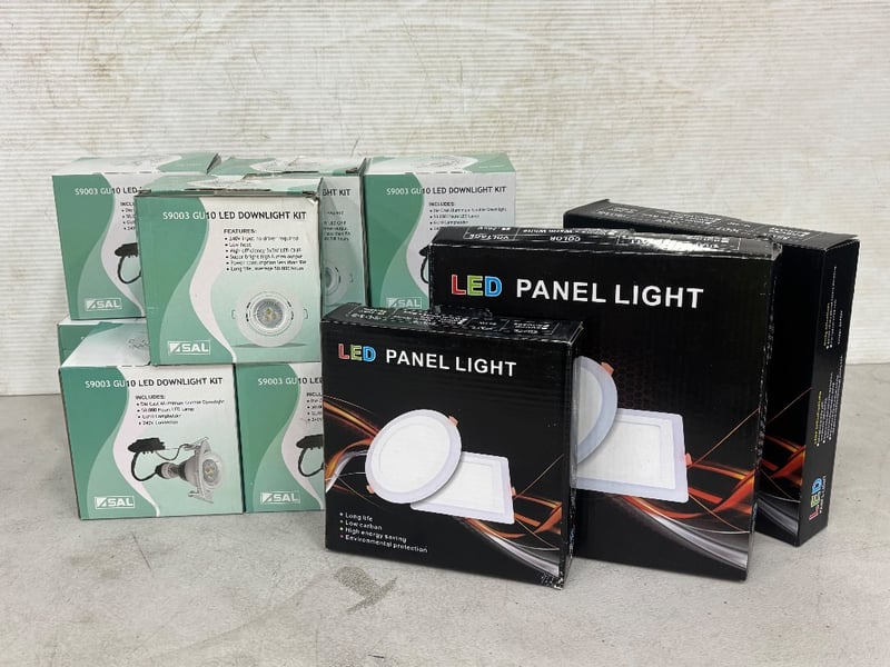 Assorted LED Downlight Kits, Panel Lights, Various Sizes and MountsSOLD AS LOT