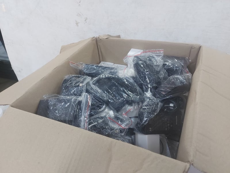 Assorted Lot of Wall Chargers, 24V 2A, Brand: HP, Model: HP F1454A, LED Light Bulbs and Mounts and moreCondition: UntestedSold as lot.
