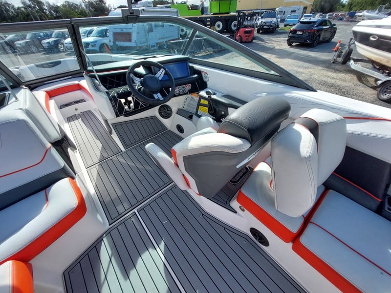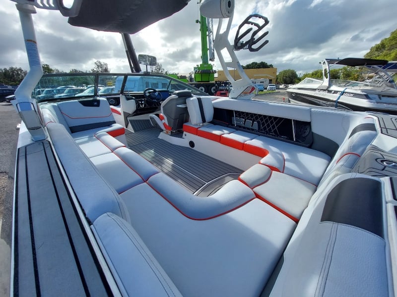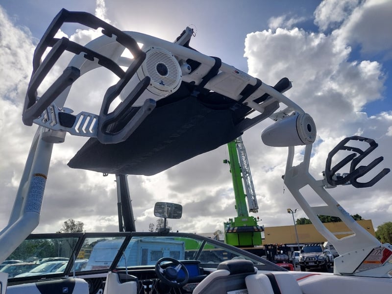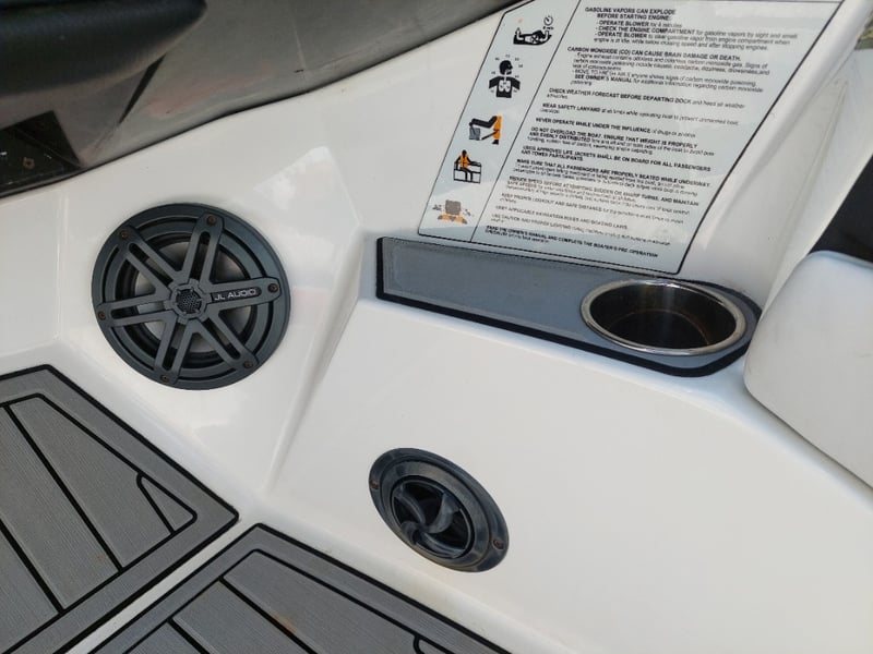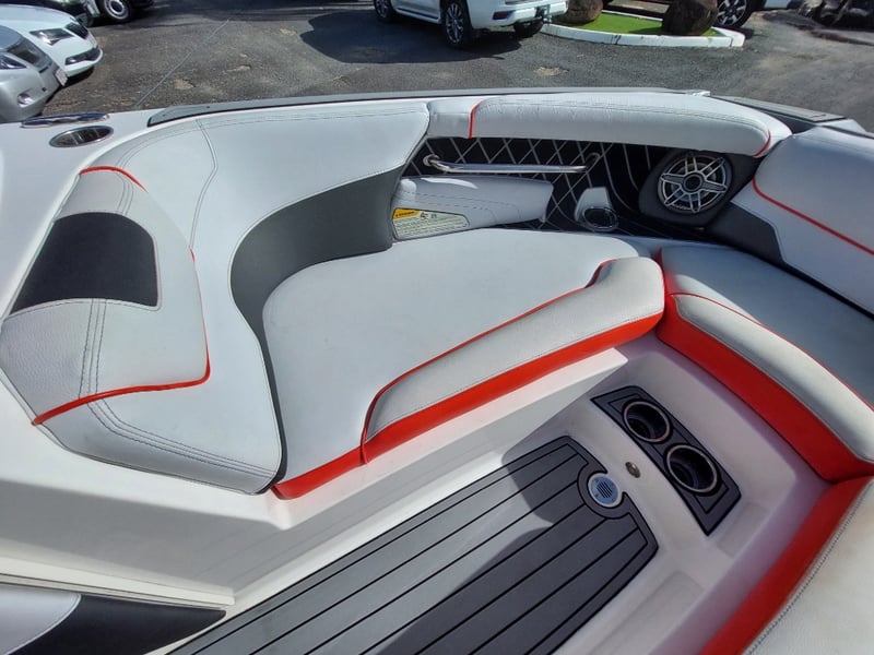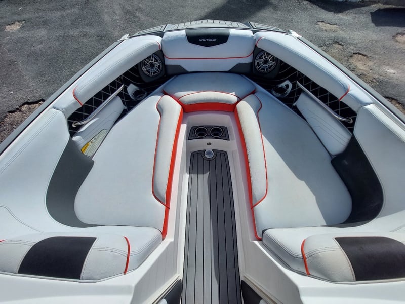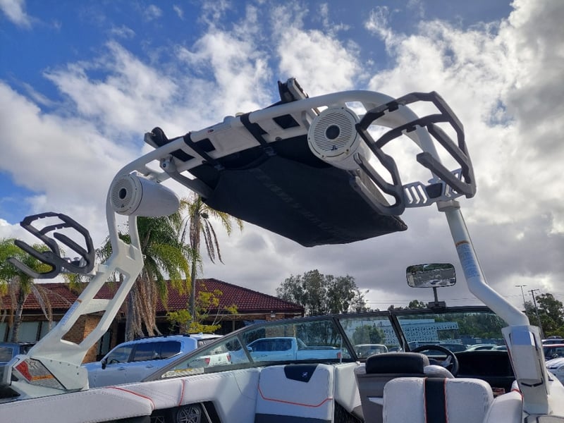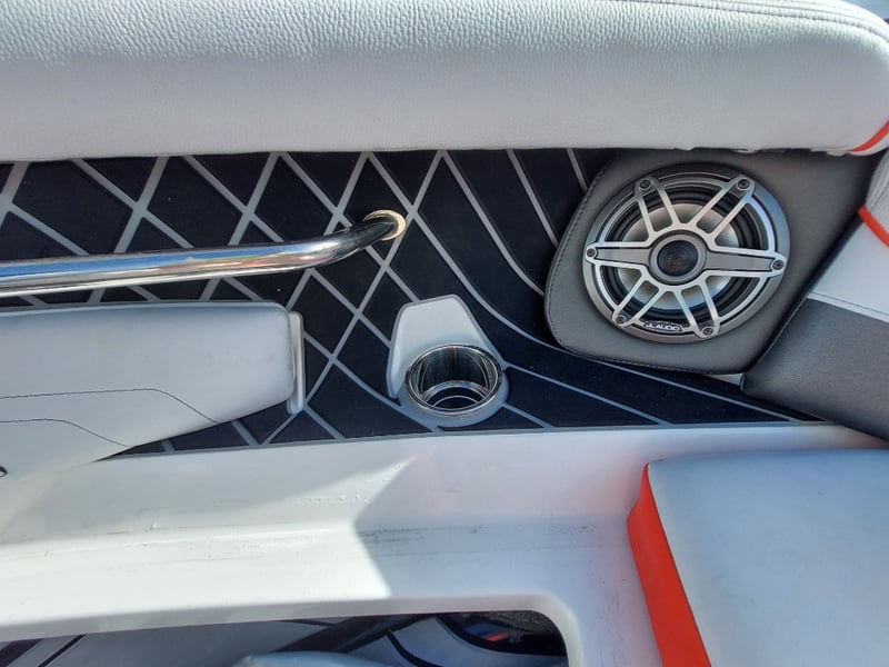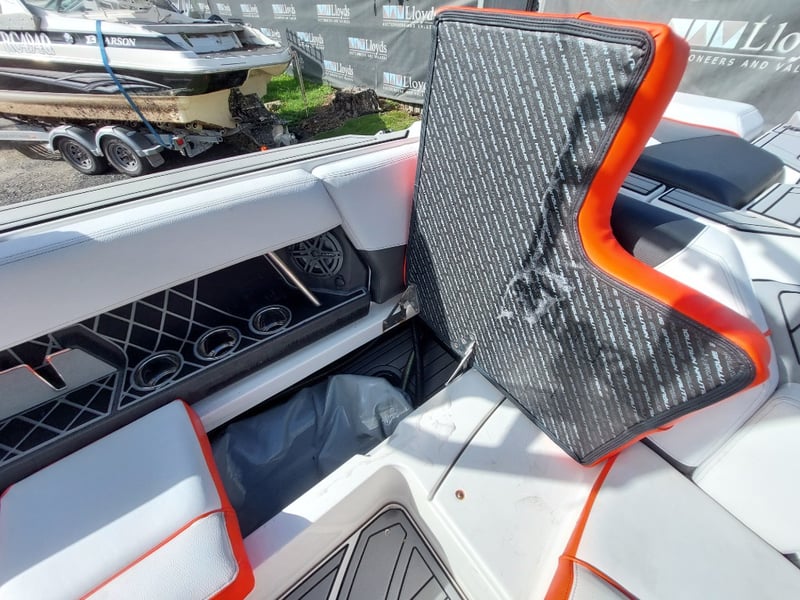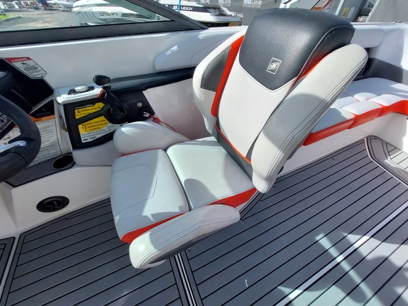 Description: JL M Series 8.8 Speaker Audio System, Battery Isolator, Nautique, Surf System, Supplemental Ballast System Additional To Factory Ballast System, Mounted Bimini, Mautique Awareness Camera, Tower Prep Kit, Towable Tower Up, JL Subwoofer, Auto Fire Extinguisher, Heater With Defroster, Retractable Ski Pylon, Tandem Leather Spoke Steer thru Air Dam (Slide In), Stern Thruster, Freshwater Flush System, Boat Cover