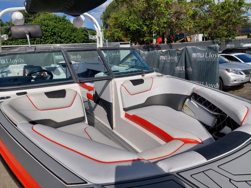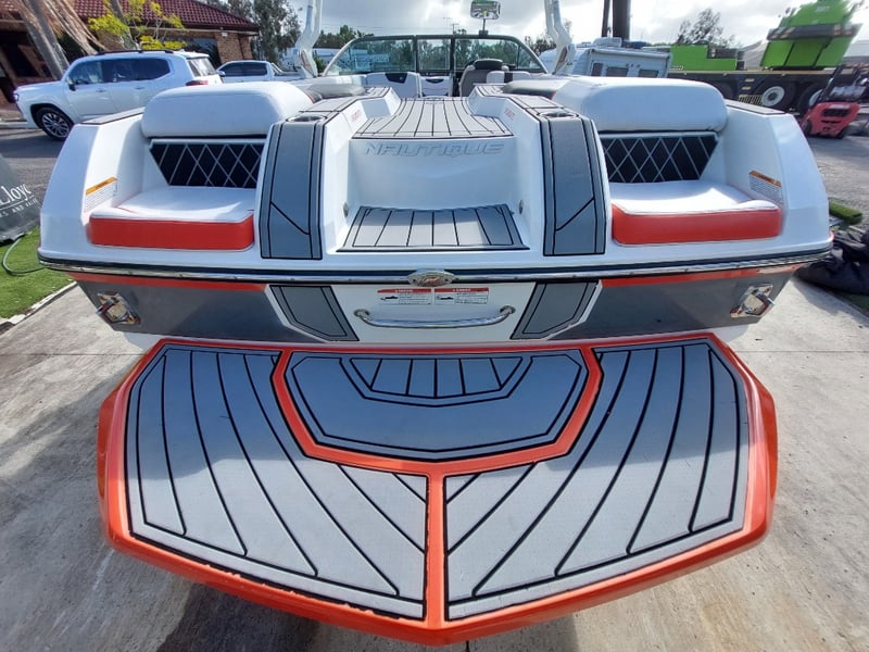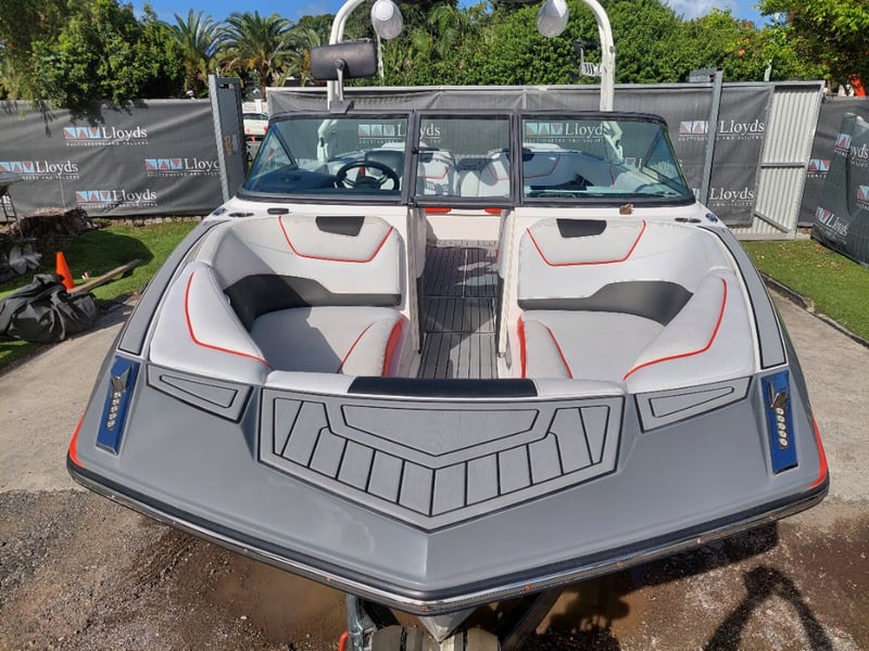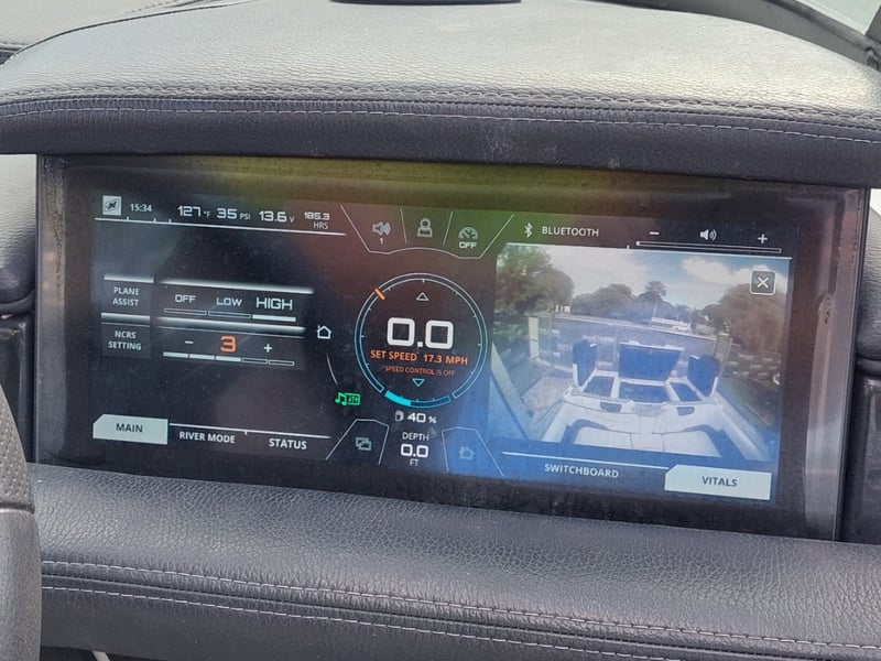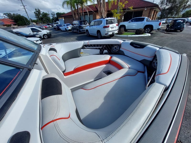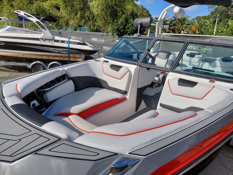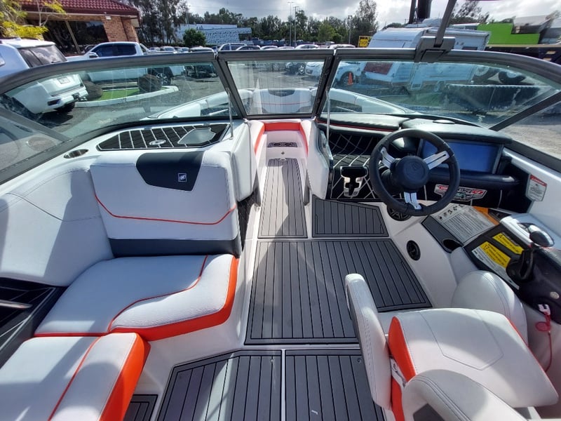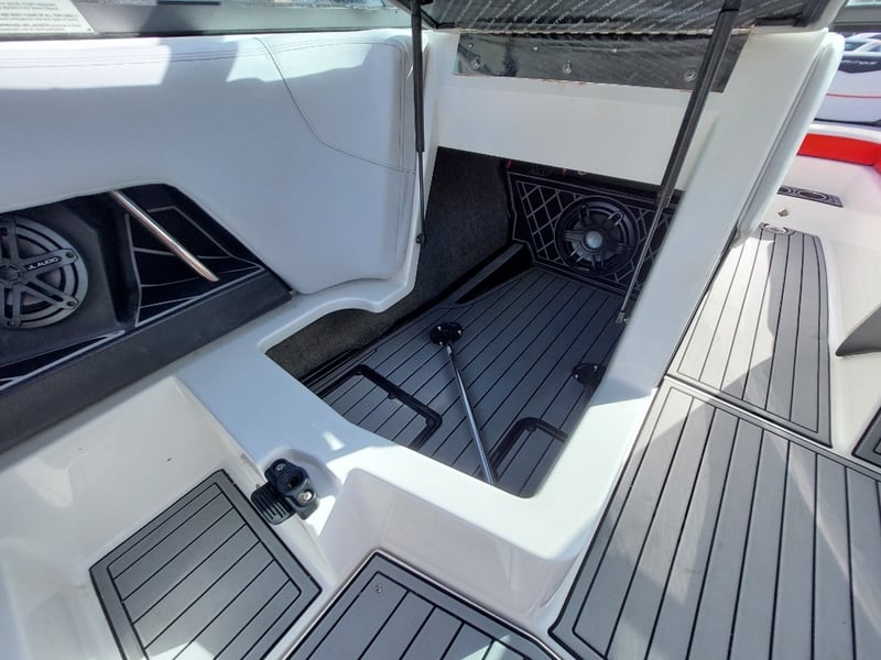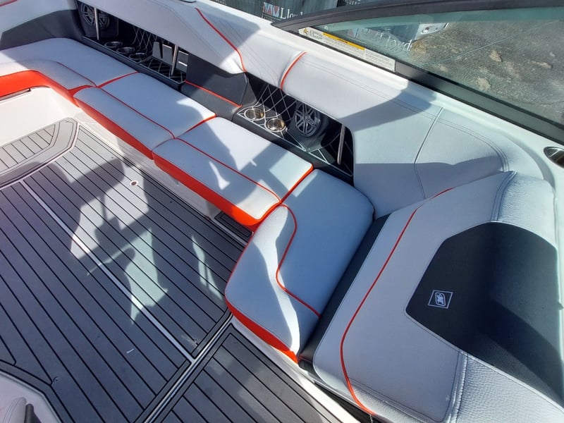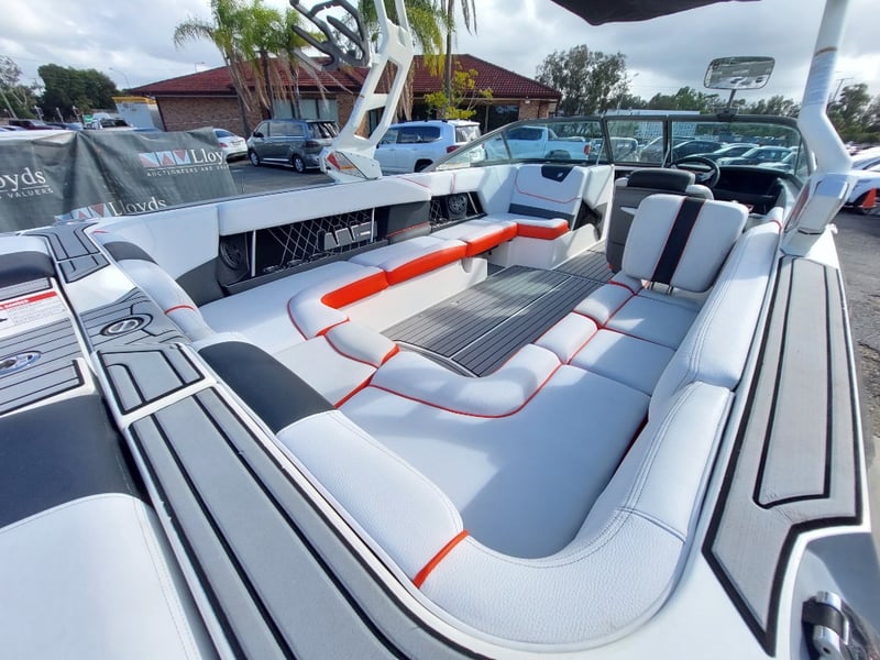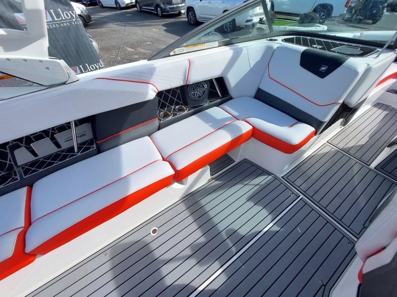 Description: JL M Series 8.8 Speaker Audio System, Battery Isolator, Nautique, Surf System, Supplemental Ballast System Additional To Factory Ballast System, Mounted Bimini, Mautique Awareness Camera, Tower Prep Kit, Towable Tower Up, JL Subwoofer, Auto Fire Extinguisher, Heater With Defroster, Retractable Ski Pylon, Tandem Leather Spoke Steer thru Air Dam (Slide In), Stern Thruster, Freshwater Flush System, Boat Cover