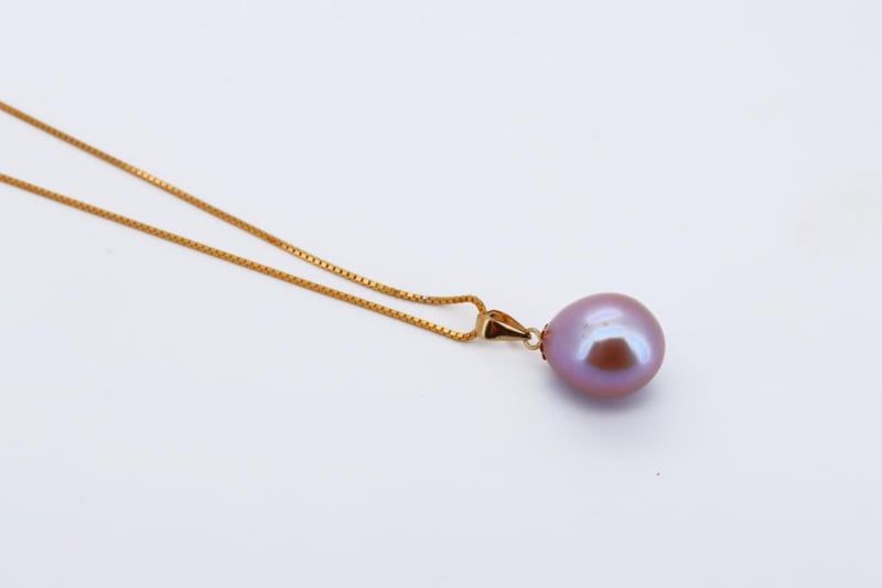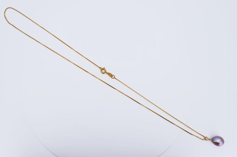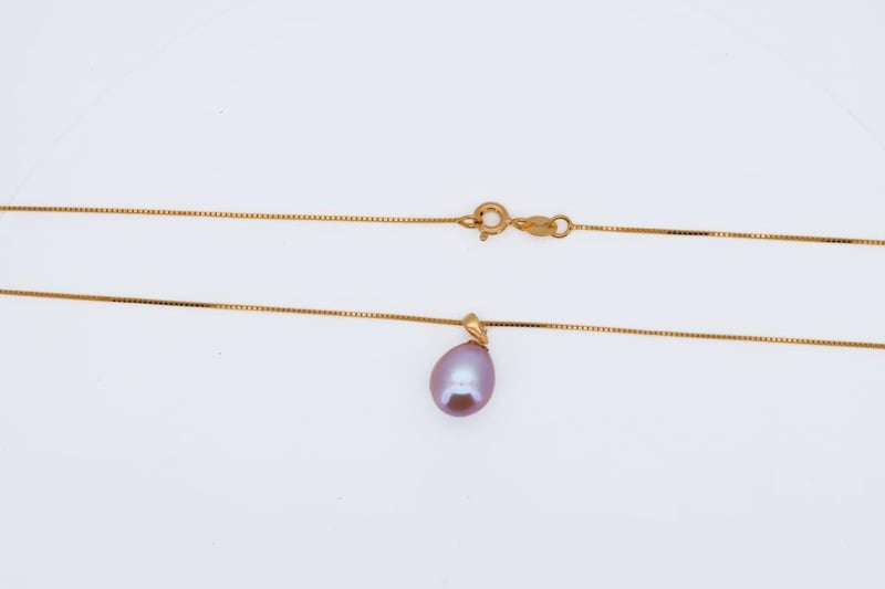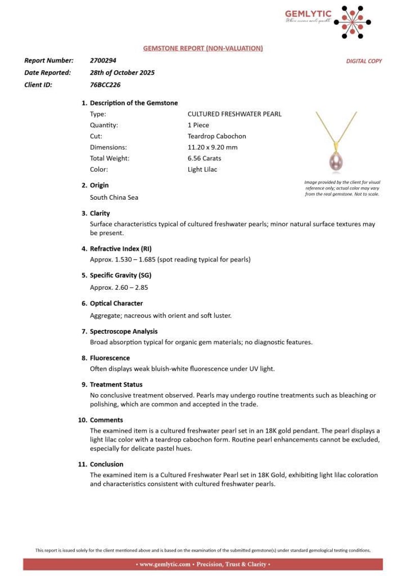 Comments: The Examined Item Is A Cultured Freshwater Pearl Set In An 18K Gold Pendant. The Pearl Displays A Light Lilac Color With A Teardrop Cabochon Form. Routine Pearl Enhancements Cannot Be Excluded, Especially For Delicate Pastel Hues.