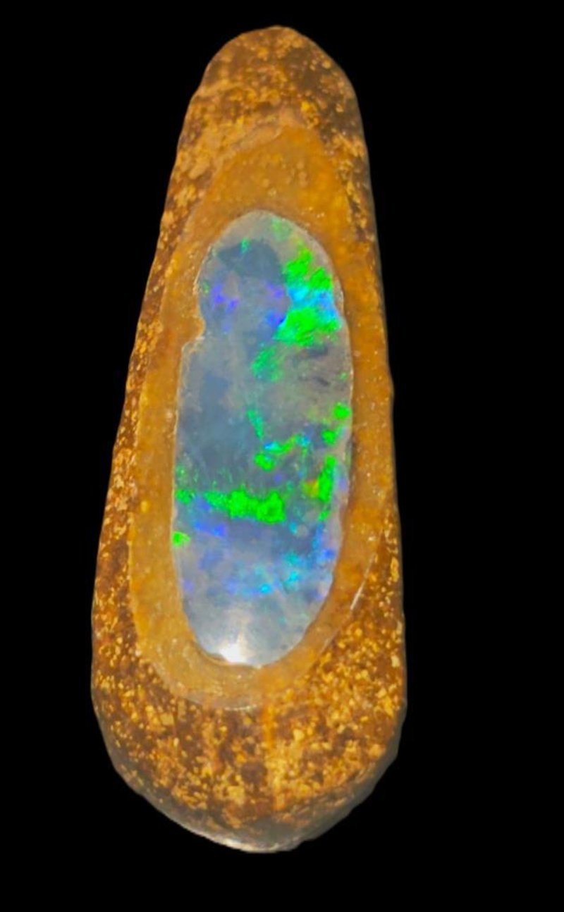 13.7 CARATS WINTON BOULDER OPAL DRILLED PENDANT WITH LIGHTNING RIDGE CRYSTAL OPAL INLAY Dimensions: 24 X 9 x 8mms 0586299+62