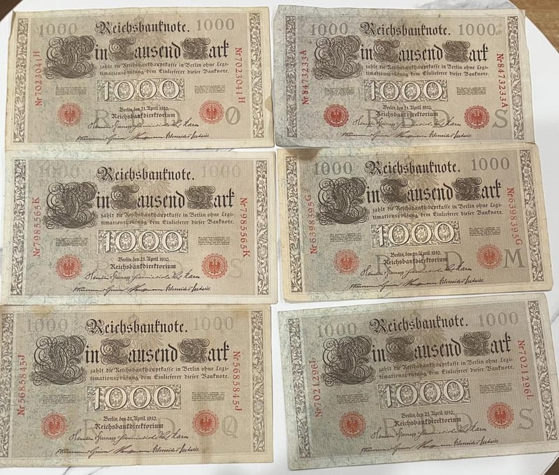 1910 GERMANY 1000 REICHSBANKNOTE BERLIN ISSUE X 6 RARE…PLEASE SEE PHOTO HAS SOME MARK BUT VERY HARD TO SOURCE 311156+20