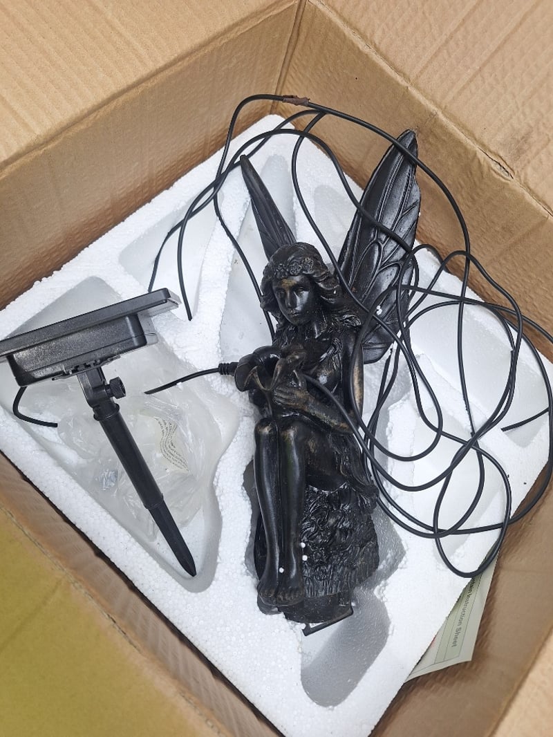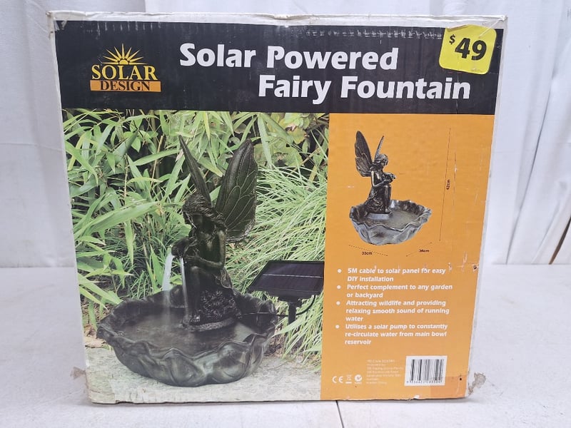 Solar Powered Fairy Fountain, Black FinishDimensions Box H:38cm W:41cm D:38cm