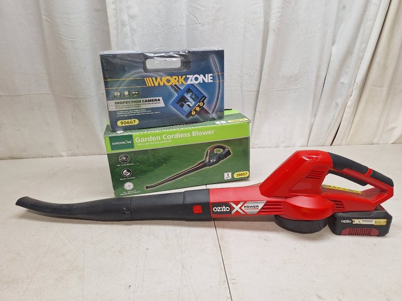 Ozito PXC 18V Li-ion Split Tube Blower, No Charger, Workzone Inspection Camera & Gardenline Garden Cordless Blower