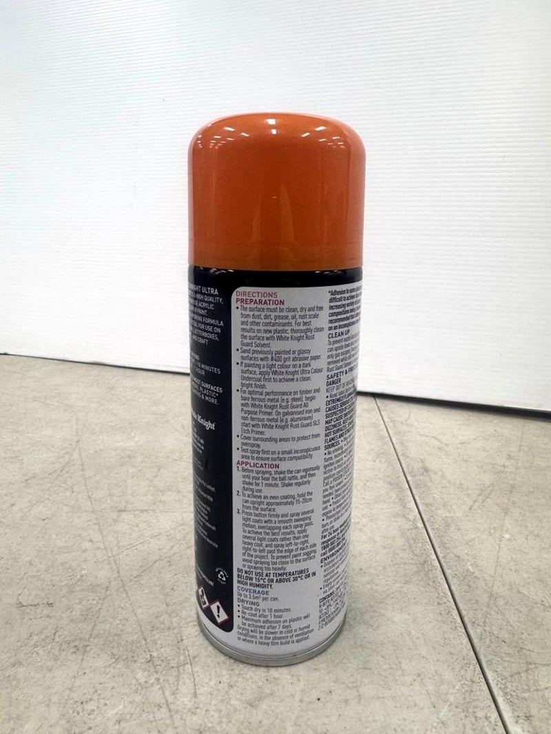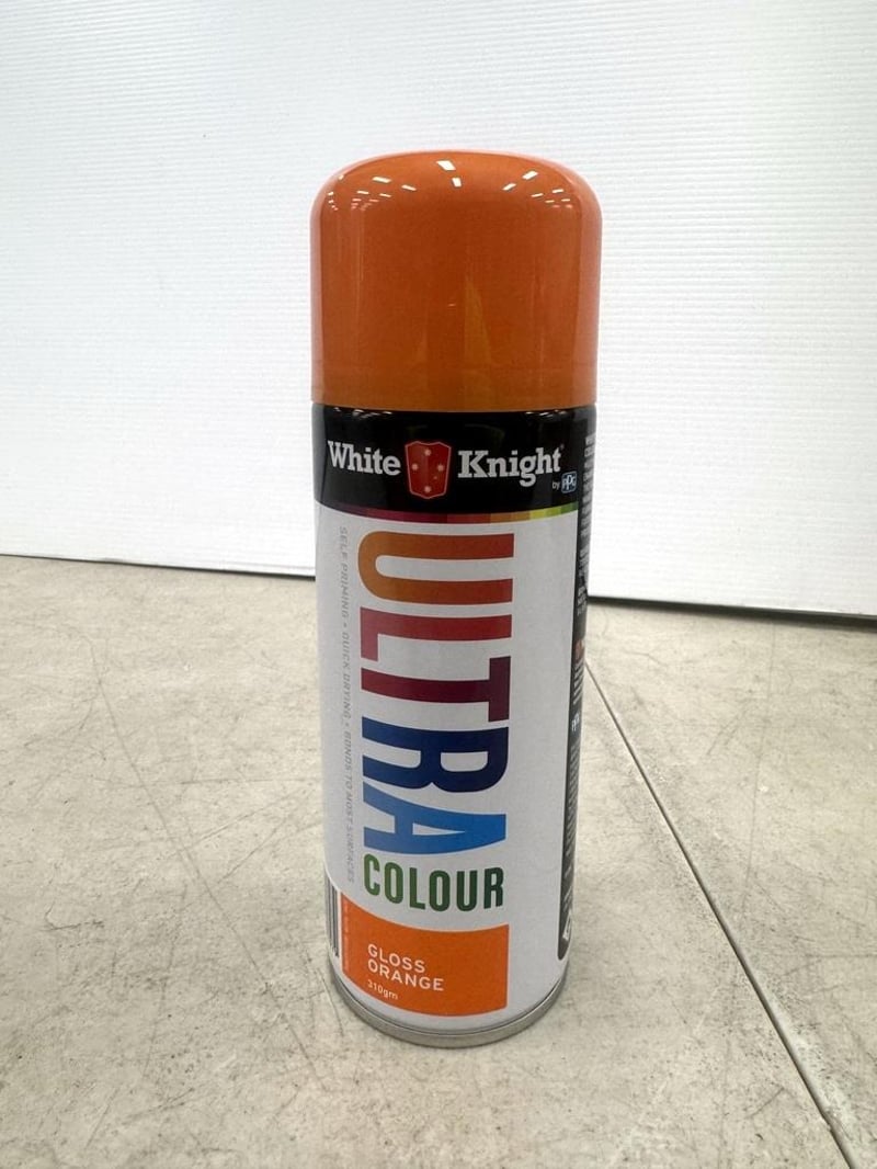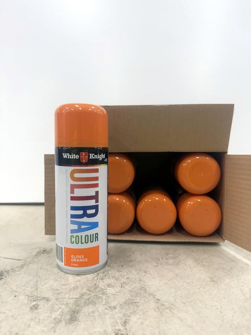 Ultra colour aerosol enamel paint, White knight, Gloss Orange, 310gm, x6 Cans
