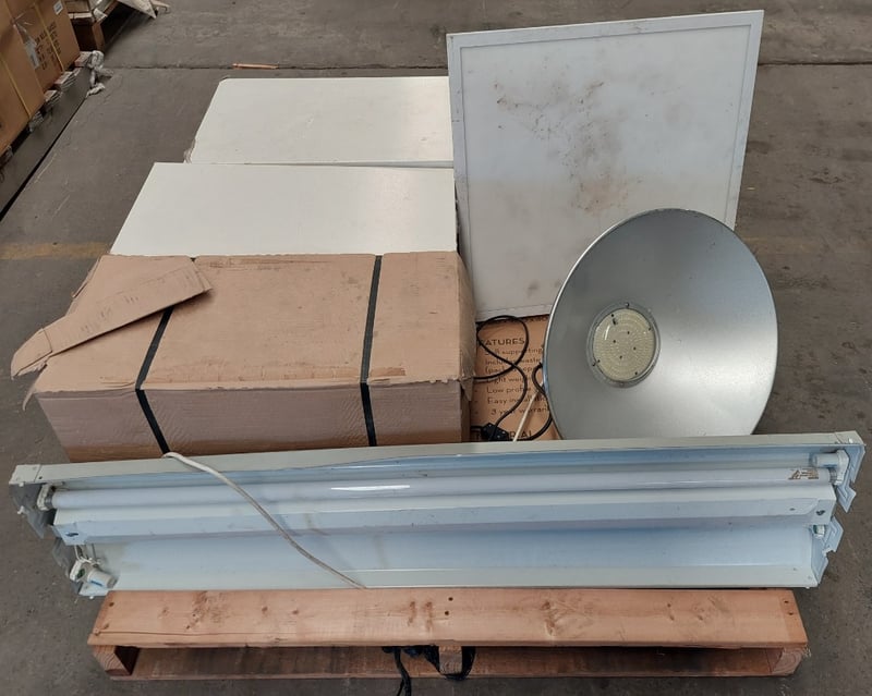 Assorted items including: various light fixtures, Destiny LED Panel, storage containers and more...