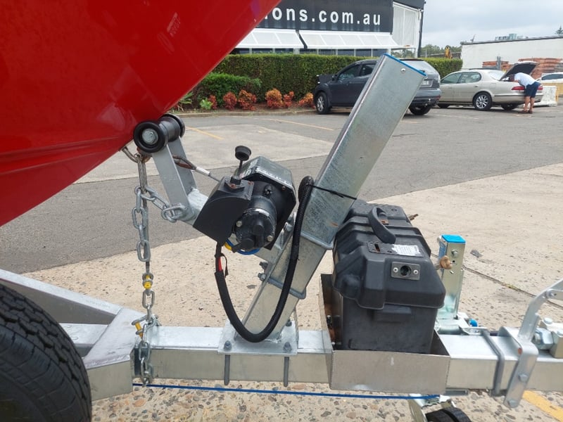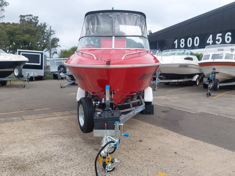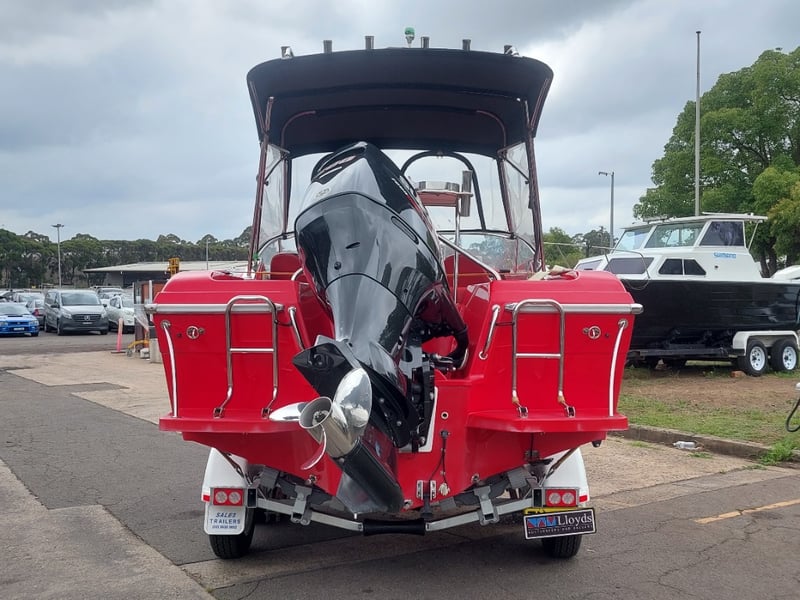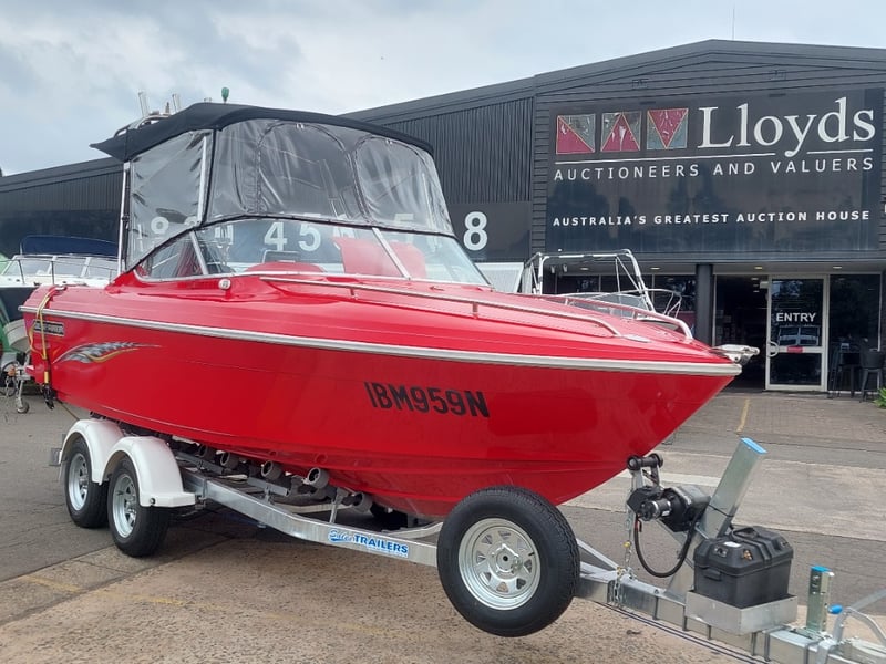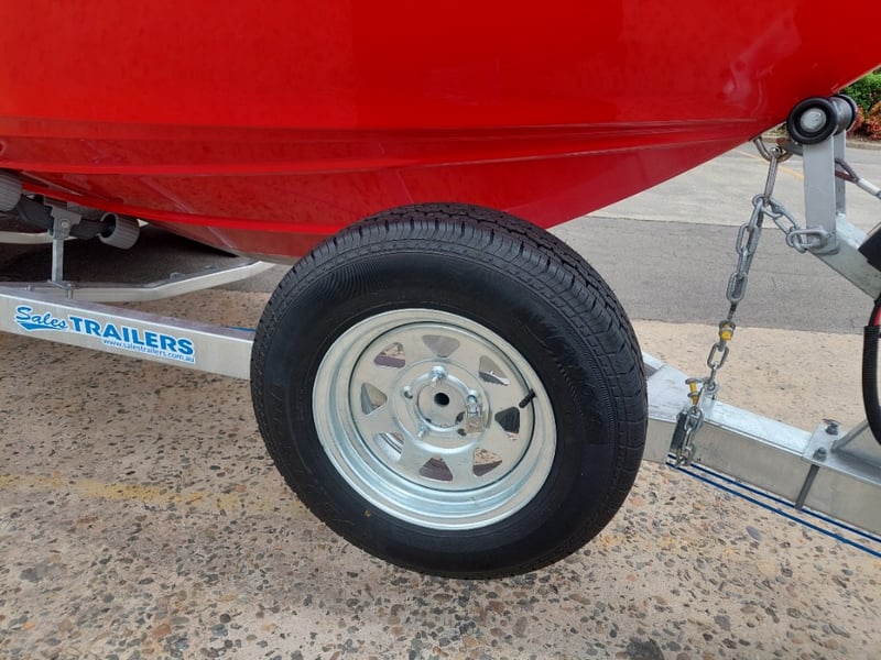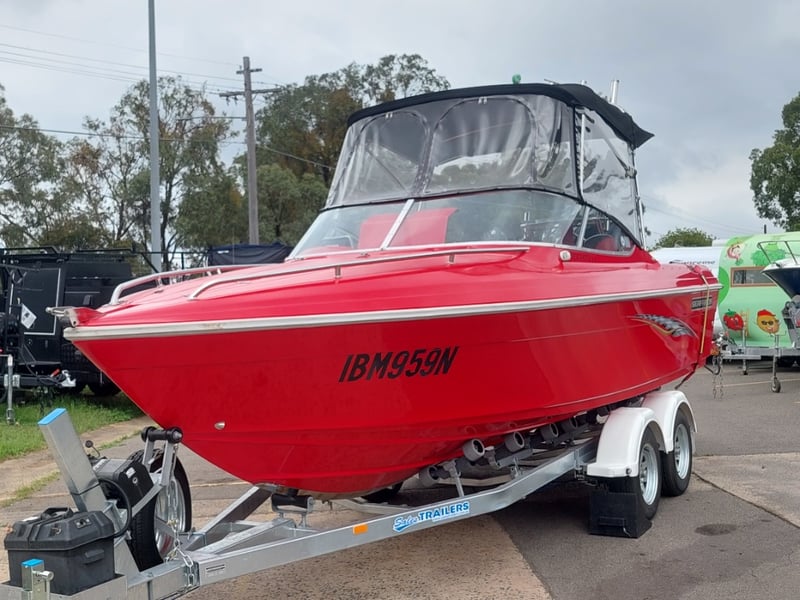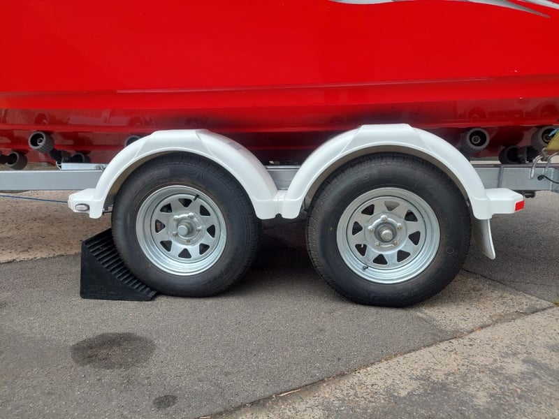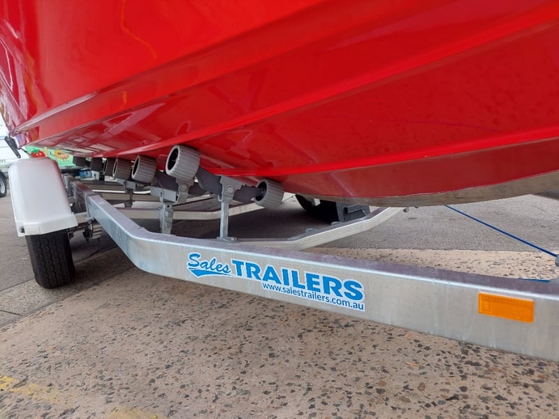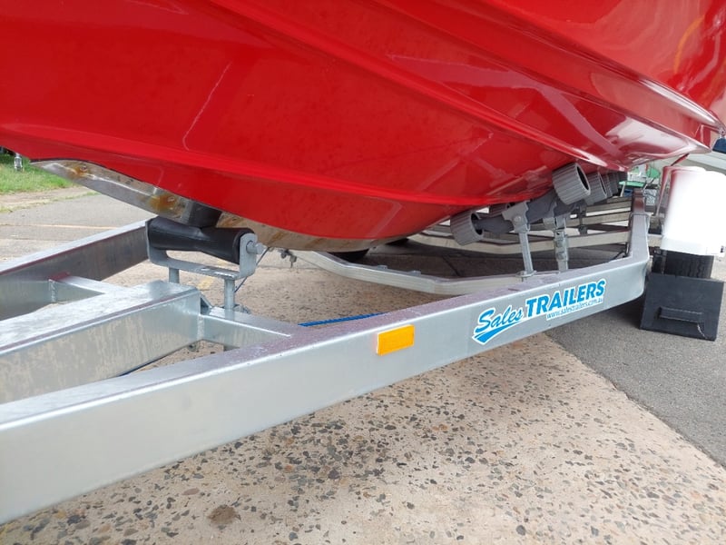 Paired with a brand-new dual axle, drive on/off trailer that has never been in the water. Purchased and registered in Sept 2025 and expertly fitted by Sales Trailers.