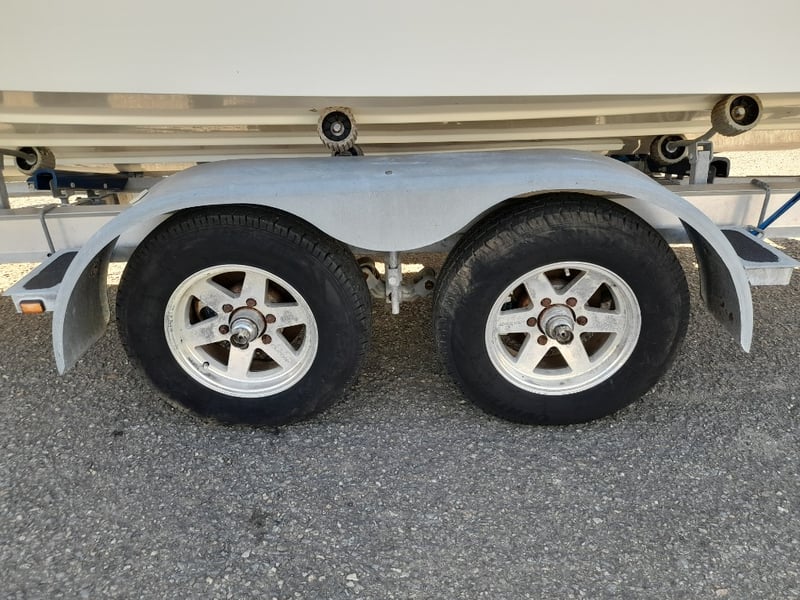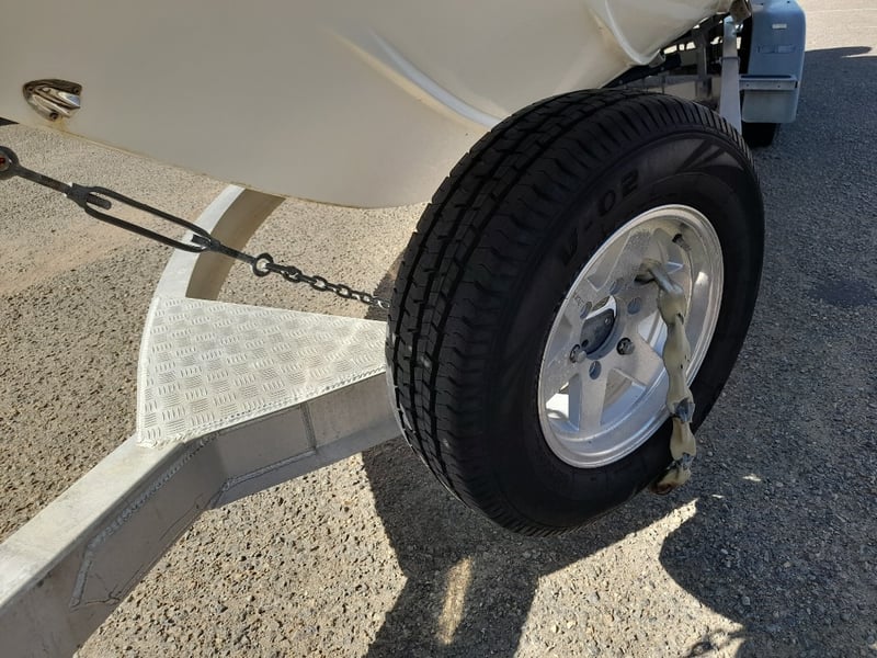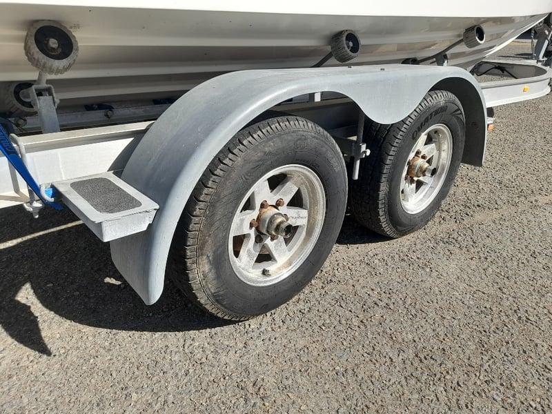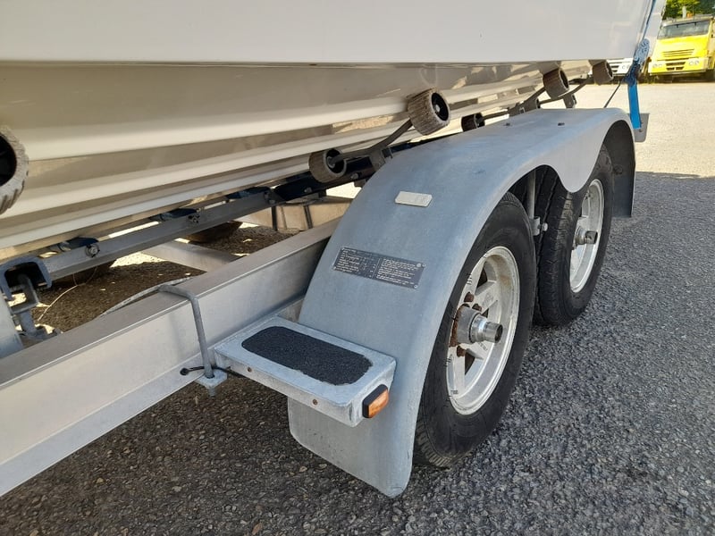 Features: Tandem axle galvanised trailer, Braked dual axles, Alloy wheels, Aluminium deck with tie-down points, Electric brakes with Hydrastar actuators, LED navigation lights, Submersible trailer lights, Single hand operated winch with safety cable, Aluminium bunk supports