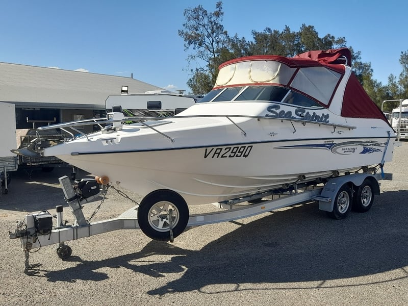 Description/extras: Life Jackets, Anchor, Bilge Pump, Navigation system, Fridge, Ropes, VHF, Swimming Ladder, Fish finder, Built-in Esky. Well-maintained 6.2-metre Sea spirit cabin cruiser offering comfortable day cruising and weekend getaways. The fibreglass V-hull design provides excellent stability and manoeuvrability across varying water conditions. Powered by a proven Yamaha V6 200 horsepower outboard engine with 1,105 operating hours, delivering reliable performance and economical fuel efficiency. Interior features include a functional galley, enclosed cabin with canvas canopy featuring side and front visibility panels, comfortable seating for 6–8 persons, working toilet facilities, and convenient storage compartments. The modern helm station includes digital instrumentation, Lowrance Elite 5 fish finder with GPS navigation, Yamaha tachometer and speed indicator, and full complement of switch controls. Dual battery, electric spot light, Lenco double rocker system, live bait tank. The boat displays excellent condition throughout with quality furnishings and attention to detail. Comprehensive safety equipment including multiple lifejackets stored in cabin. Supplied on a purpose-built tandem axle galvanised trailer featuring electric brakes, alloy wheels, submersible lights, electric operated winch with safety cable, electric wheel jack. ATM rating 3,500 kg. Ideal for recreational boaters seeking a capable, well-equipped vessel with reliable engine. VHF marine radio, quality stainless steel railings, bimini canopy, cabin side canvas curtains, generous cockpit seating. Minor cosmetic wear consistent with normal use. Canvas canopy exhibits expected weathering. Trailerables and trailer components in functional condition.. Inspection recommended..