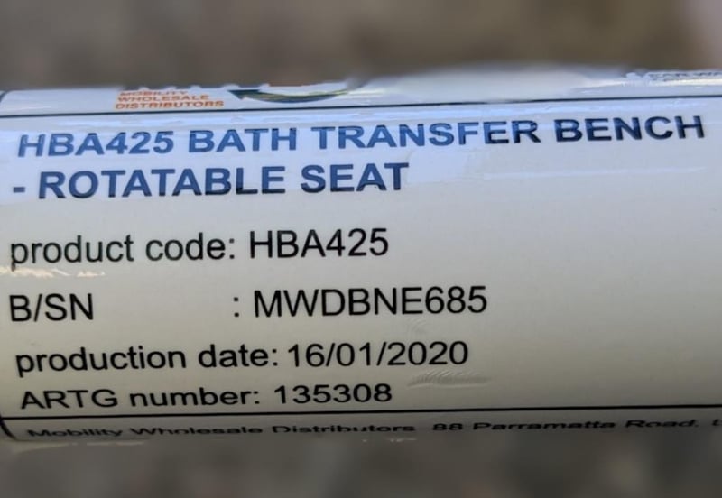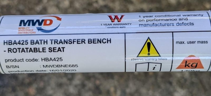 MWD HBA425 bath transfer bench rotatable seat bathtub shower chair 130kg RRP $500.00