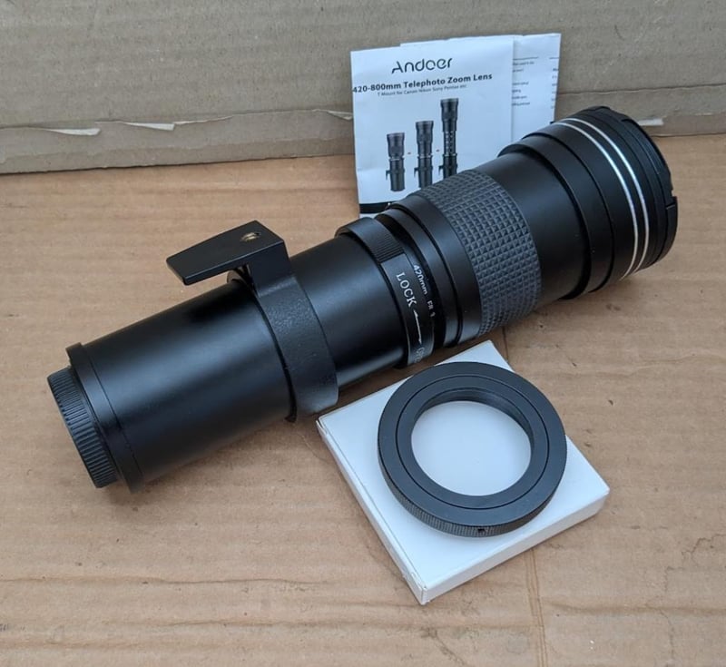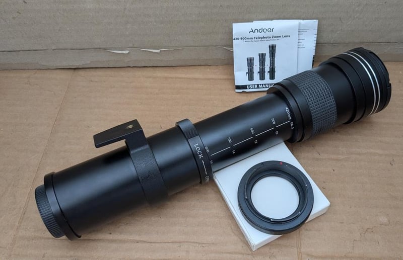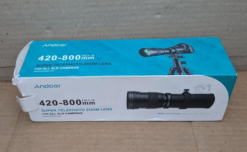 ANDOER super telephoto zoom lens for all SLR cameras 420-800mm to box