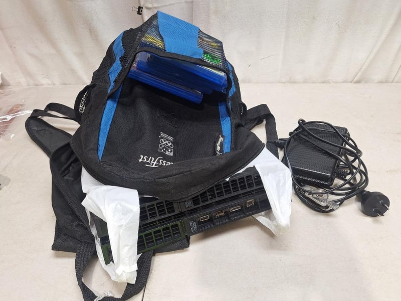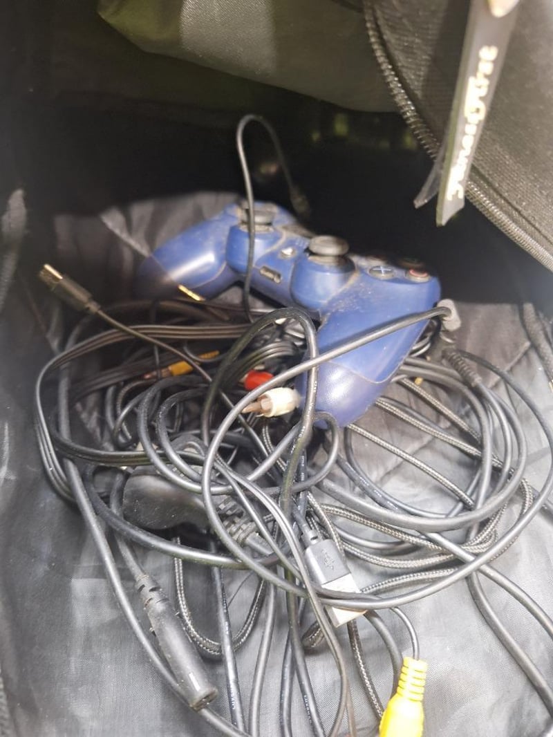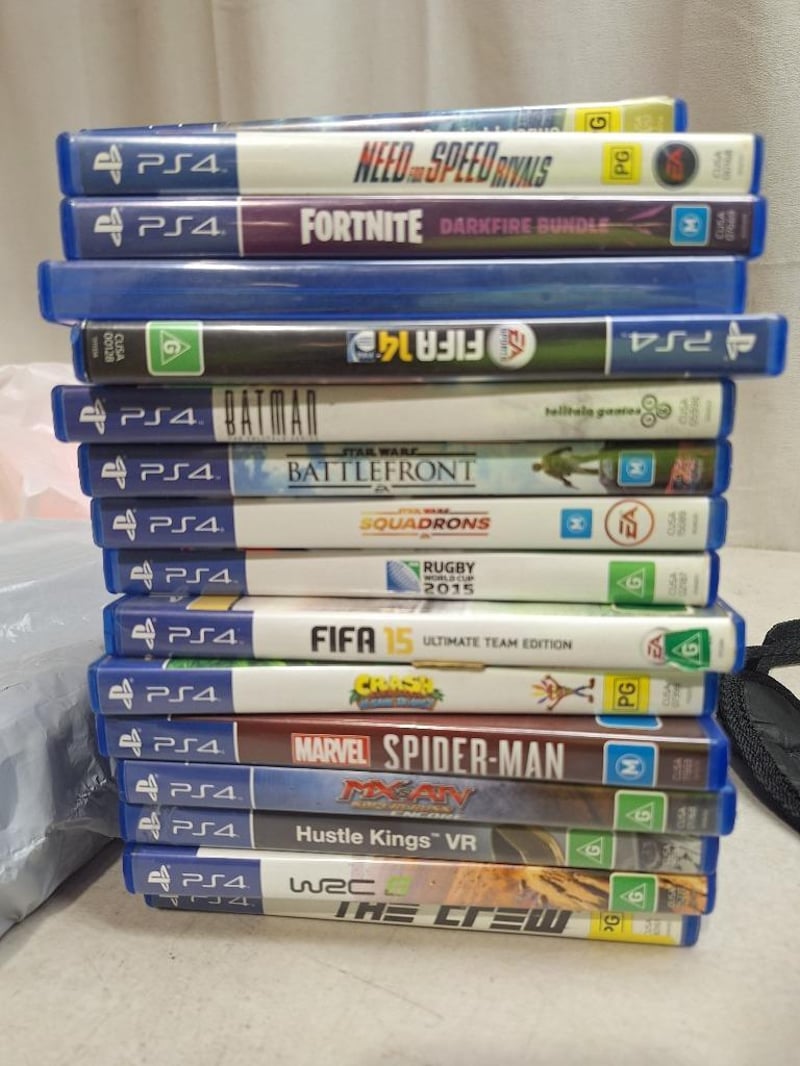 1 x SONY PS4 console, 2 x Controller, 16 x games with cords, 1 x SINGER Start sewing machine with charging cable