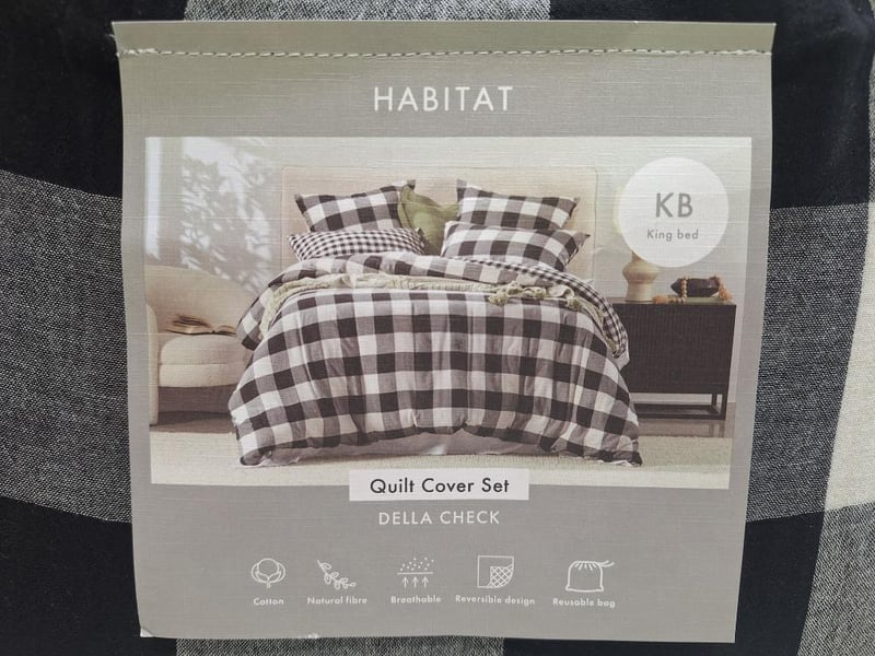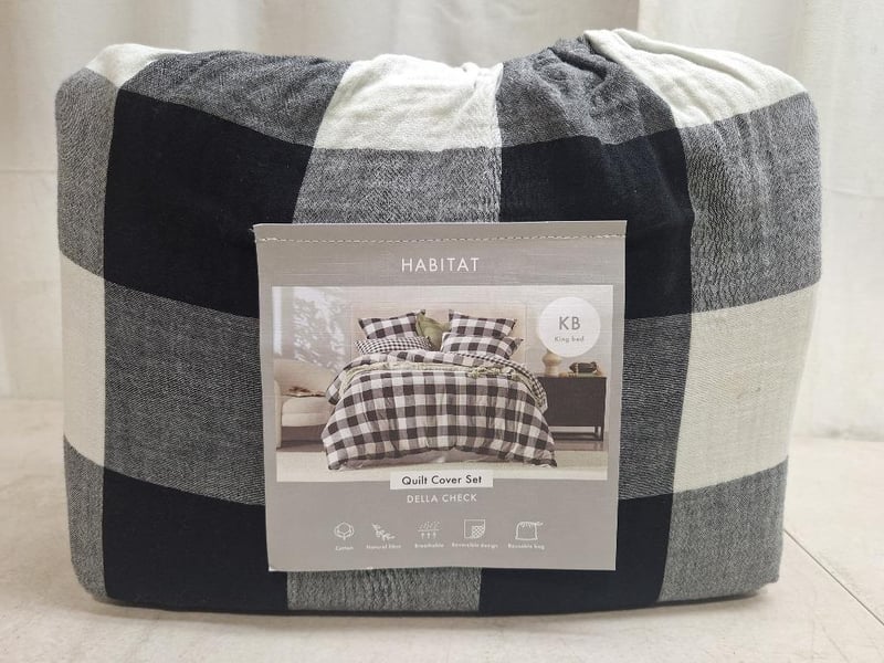 HABITAT by pillow talk, quilt cover set, della check, KB, RRP$249.00, NEW with tags