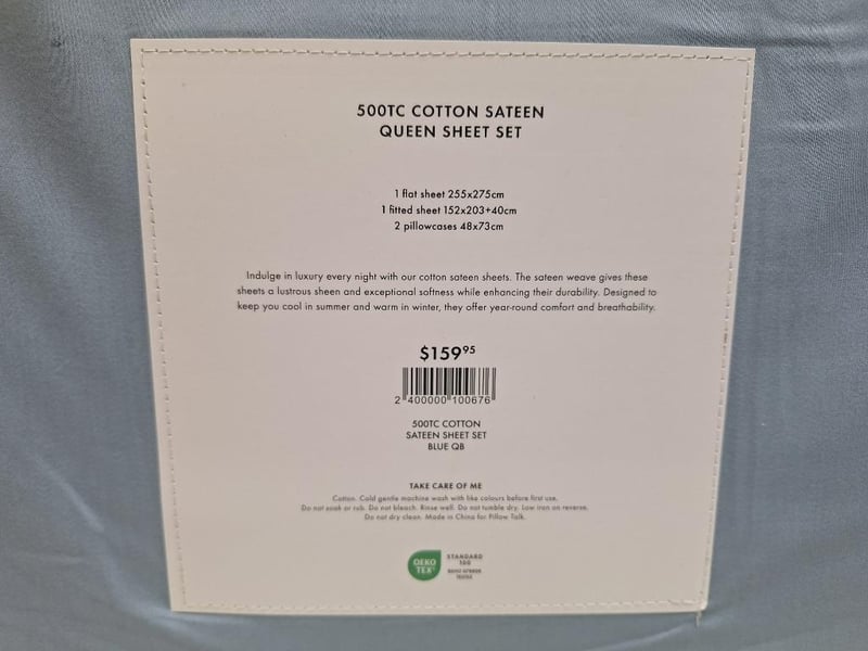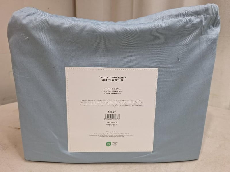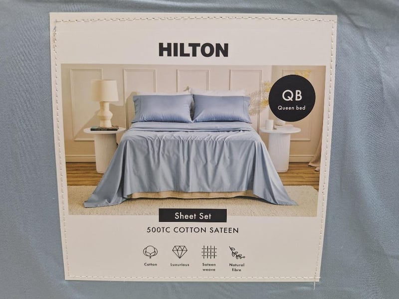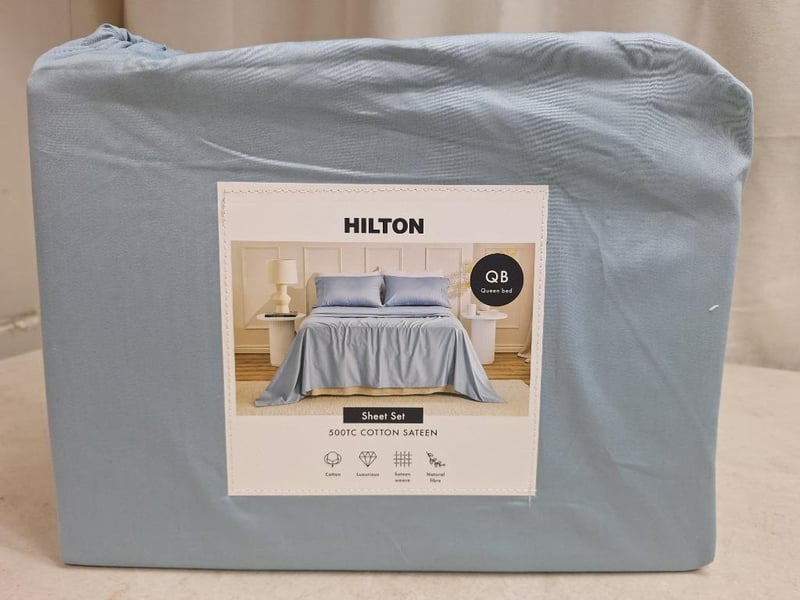 HILTON 500TC cotton sateen sheet set, QB blue, RRP$159.00, NEW with tags
