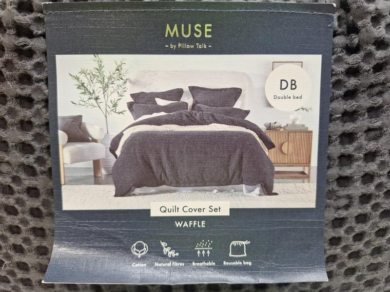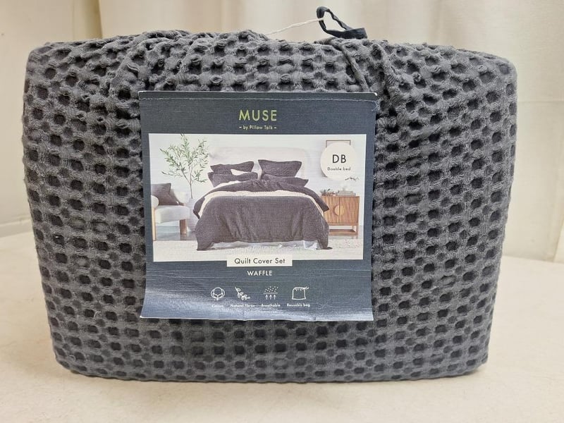 MUSE by pillow Talk waffle double quilt cover, charcoal DB, RRP$199.00, NEW with tags