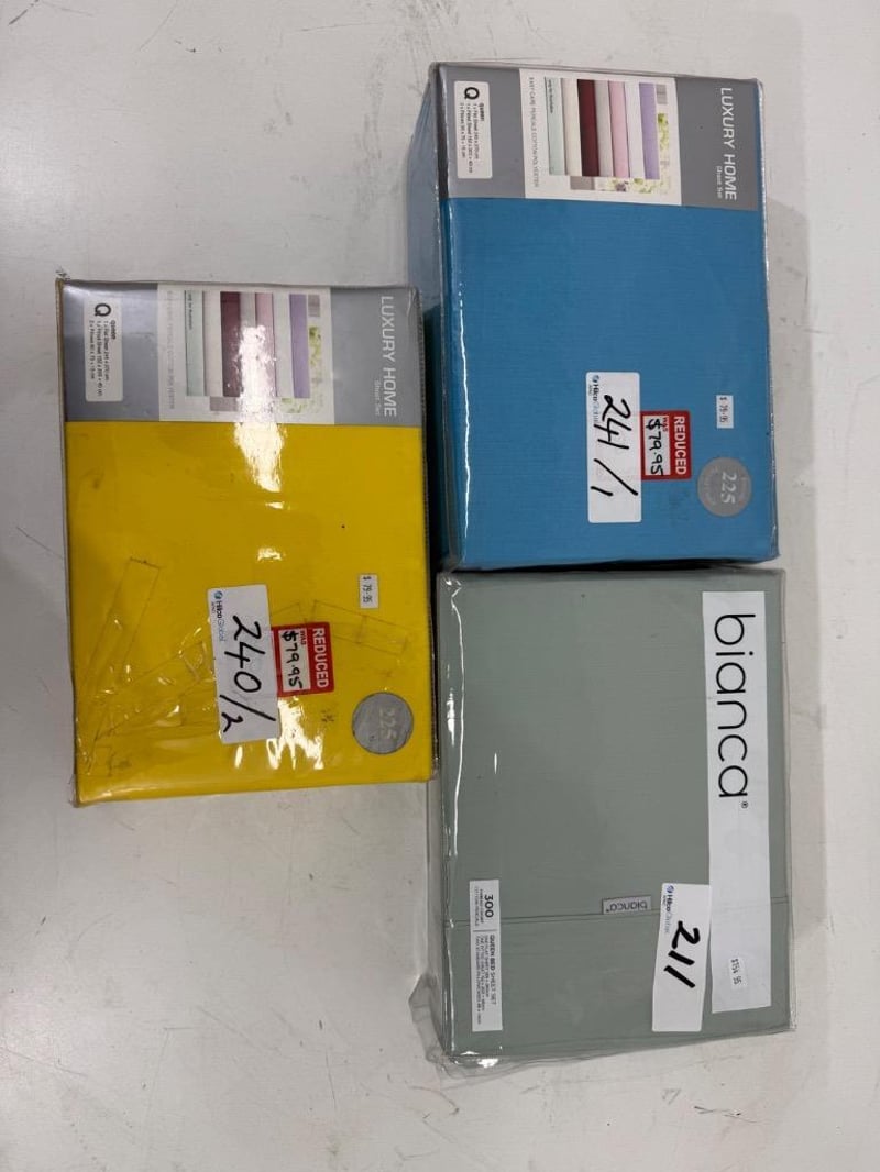 RRP: $293, Bianca Queen Bed Sheet Set, QTY of 2 Luxury Home Sheet Set - Queen, colour Mustard and Blue. Quantity-3 Sold as lot