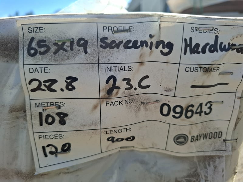 DAR QLD Mix Hardwood Screening, 65mm x 19mm x 900mm120 Pieces to PackSOLD AS LOT