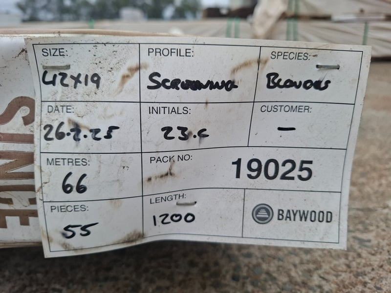 Screening Beach Blonde, 42mm x19mm x 1200mm55 Pieces to PackSOLD AS LOT