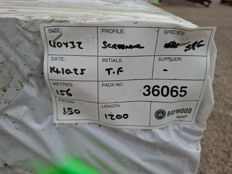 Screening QLD Spotted Gum, 40mm x 32mm x 1200mm130 Pieces to PackSOLD AS LOT