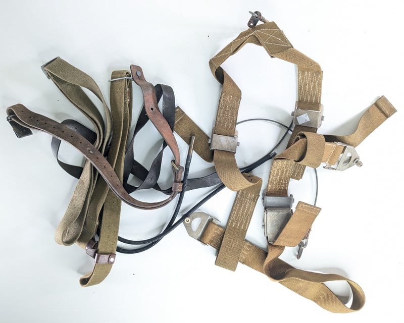 ASSORTED RIFLE SLINGS, BELT, AND HARNESS FROM WW1/WW2 ERA.