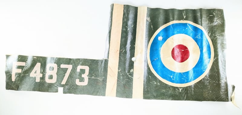 A PIECE OF ORIGINAL FABRIC PAINTED CANVAS FROM A DE HAVILLAND DH.9A "NINAK" AIRCRAFT.Item Size: Height: 36cm, Width: 88cm, Depth: 1cm, Weight: 1KgThe Fabric Features The "F4873" Serial Number And A Royal Air Force (Raf) Roundel. The Specific Aircraft F4873 Served With No. 84 Squadron In Iraq During The 1920S. The Roundel Style (Red, White, And Blue Circles) Was Used By The Raf And The Early Australian Air Corps.Condition: Good - Refer To ImagesFC2C163026+11