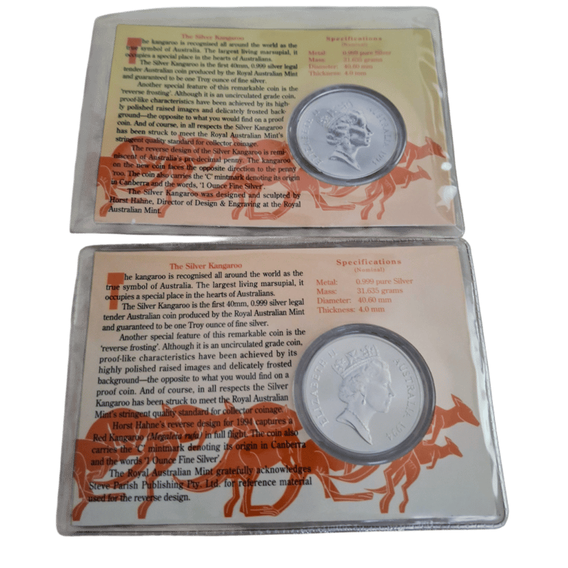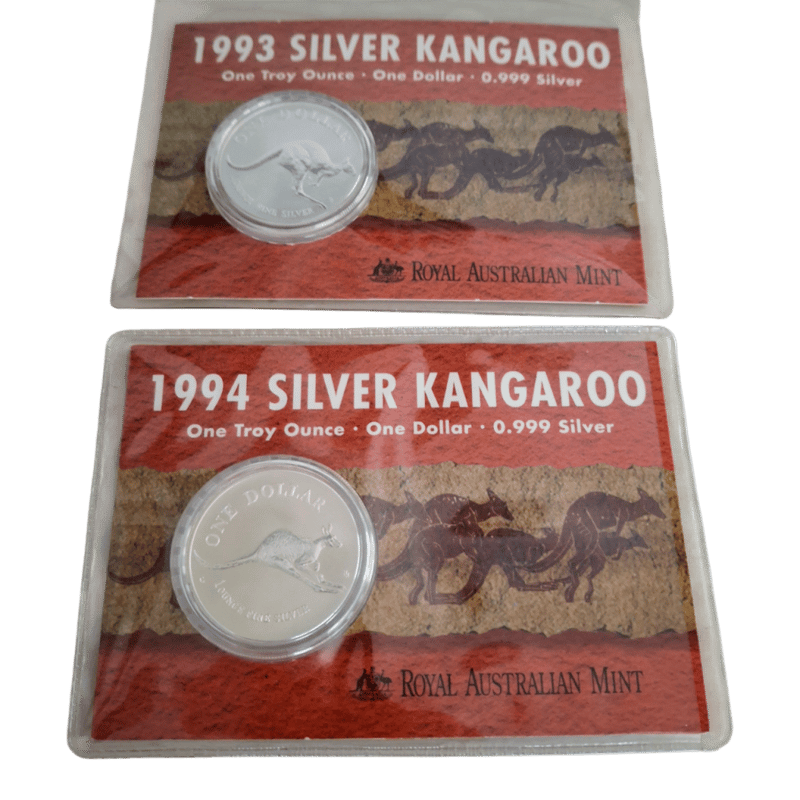 1993 & 1994 1OZ SILVER KANGAROOS - ROYAL AUSTRALIAN MINT 1993 & 1994 1Oz Silver Kangaroos - Royal Australian Mint Condition: Unc23528+44