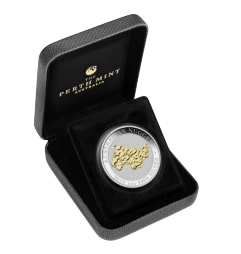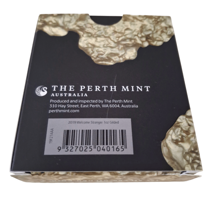 WELCOME STRANGER 1OZ SILVER PERTH MINT GILDED COIN IN BOX Welcome Stranger 1Oz Silver Perth Mint Gilded Coin In Box - Perth Mint, 2019 With Cert Condition: Unc23528+45