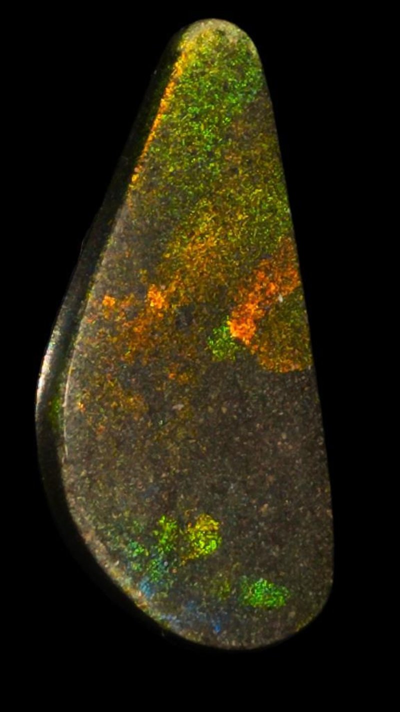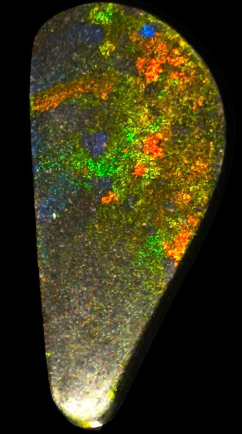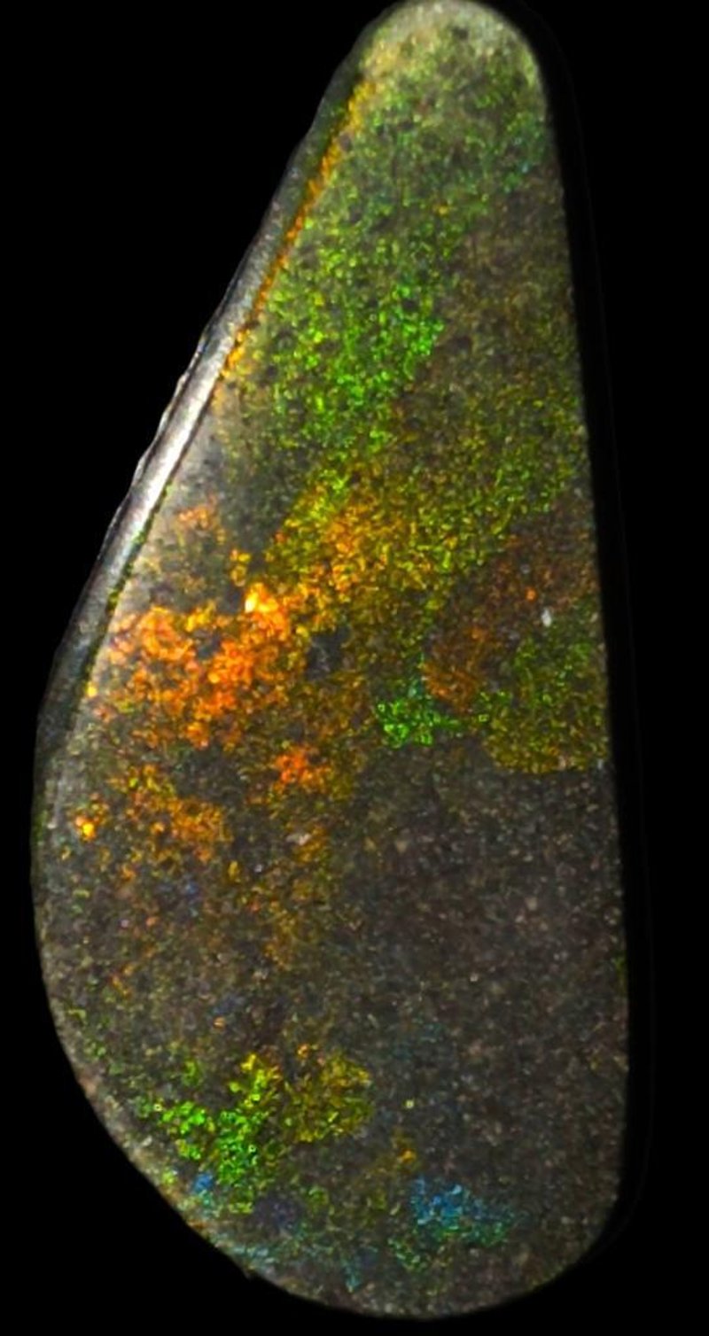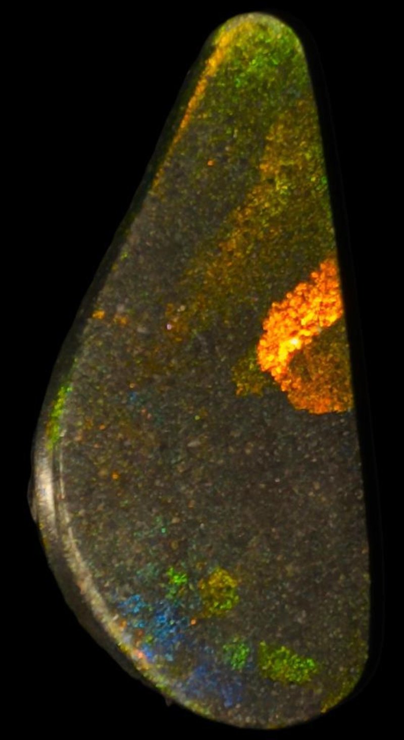 41.2CT TOP ANDAMOOKA MATRIX OPAL Dimensions: 43 X 20 x 5mms Double Sided Bright Oranges Olives Blues Yellows Golds, Big Pendant Cut 0587771+58