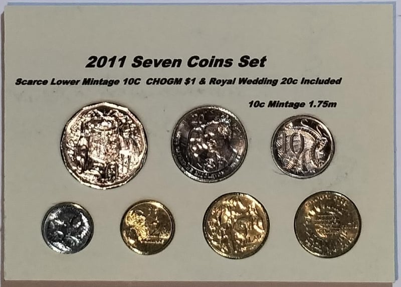 2011 SEVEN COIN SET SCARCE LOWER MINTAGE 10C & CHOGM $1; ROYAL WEDDING 20C INCLUDED Condition: UNCEx Mint Roll/Bag488408+27