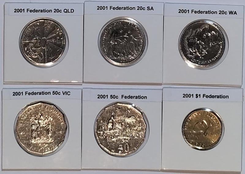 2001 CENTENARY OF FEDERATION COLLECTION ASSORTED (20C; 50C; $1) Condition: UNCEx Mint Roll/Bag488408+31